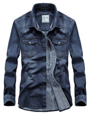국경 간 공장 재고 직접 공급 데님 남자의 긴 소매 셔츠 플러스 사이즈 옷깃 데님 셔츠 6522 아마존스토어 가기