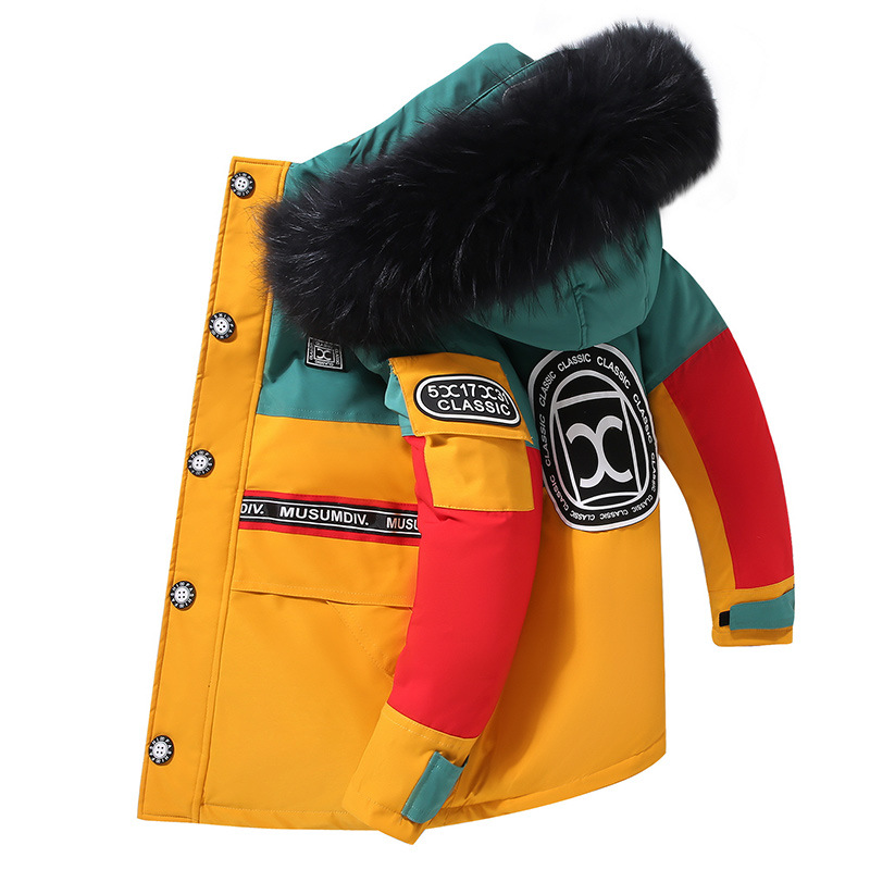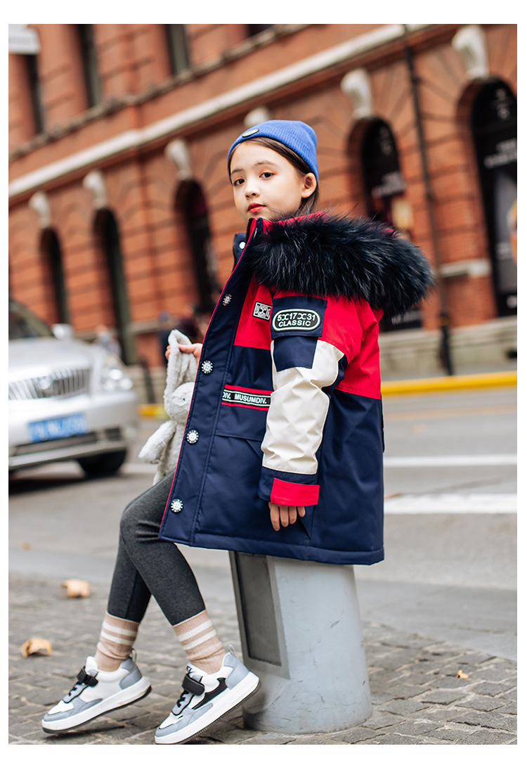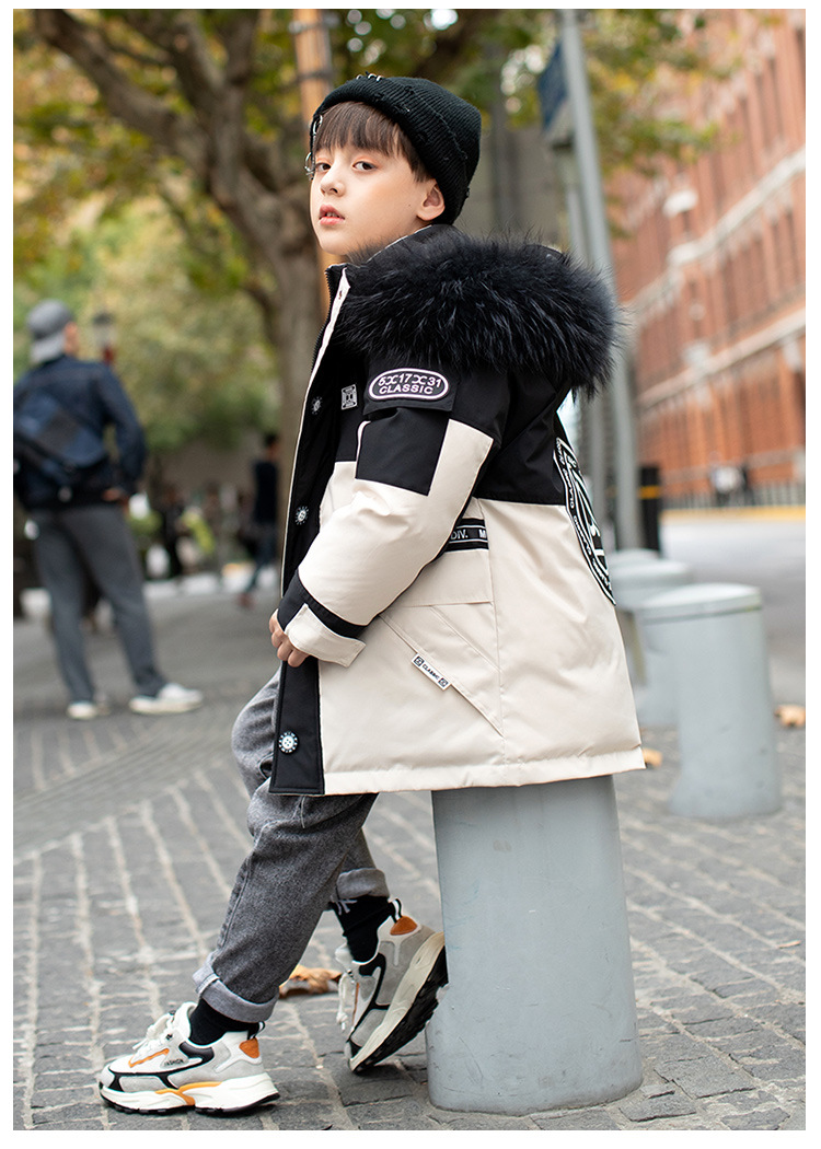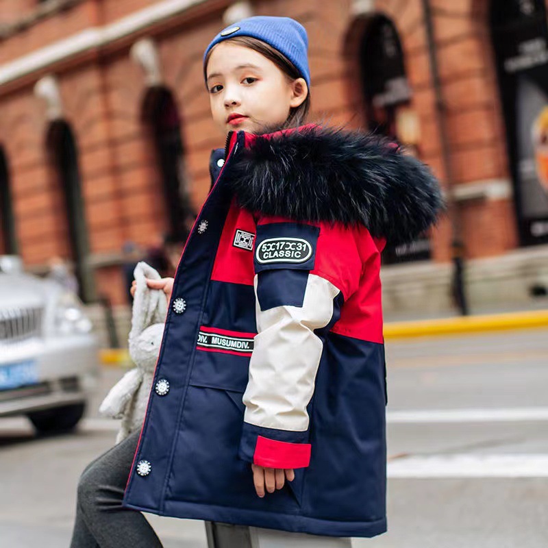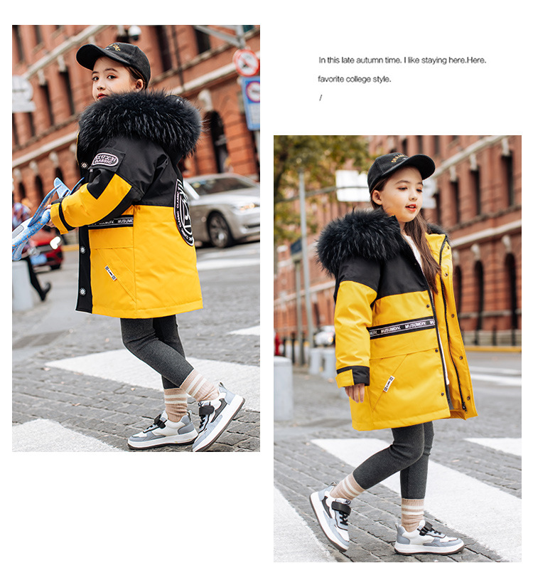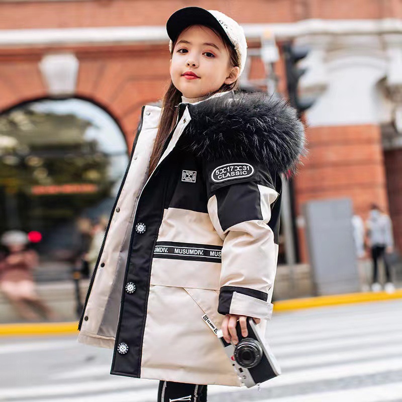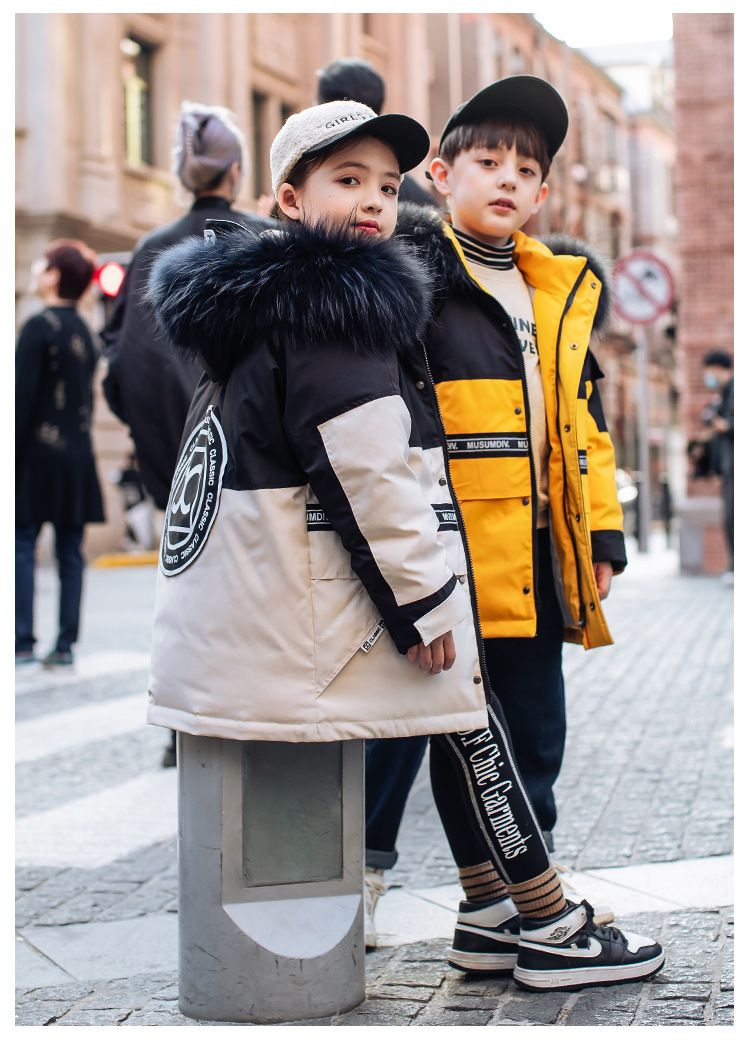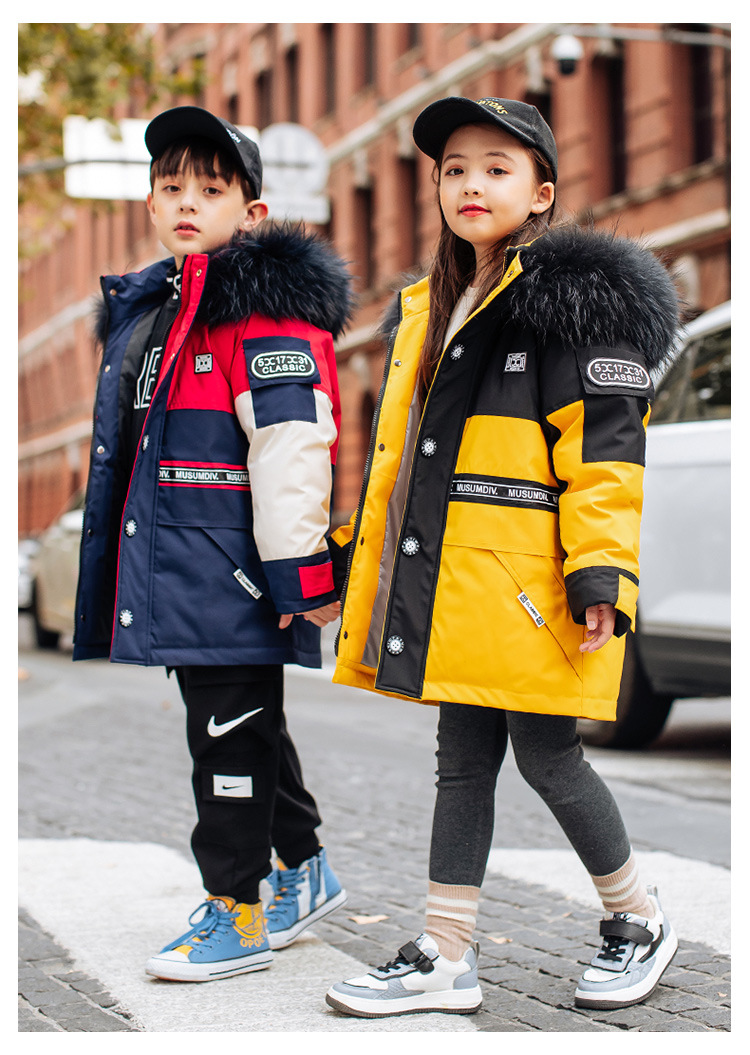 어린이 다운 재킷 남아 중간 길이 2021 새로운 스타일 여아 의류 서양식 남아 중간 길이 겨울 옷 두꺼운 재킷