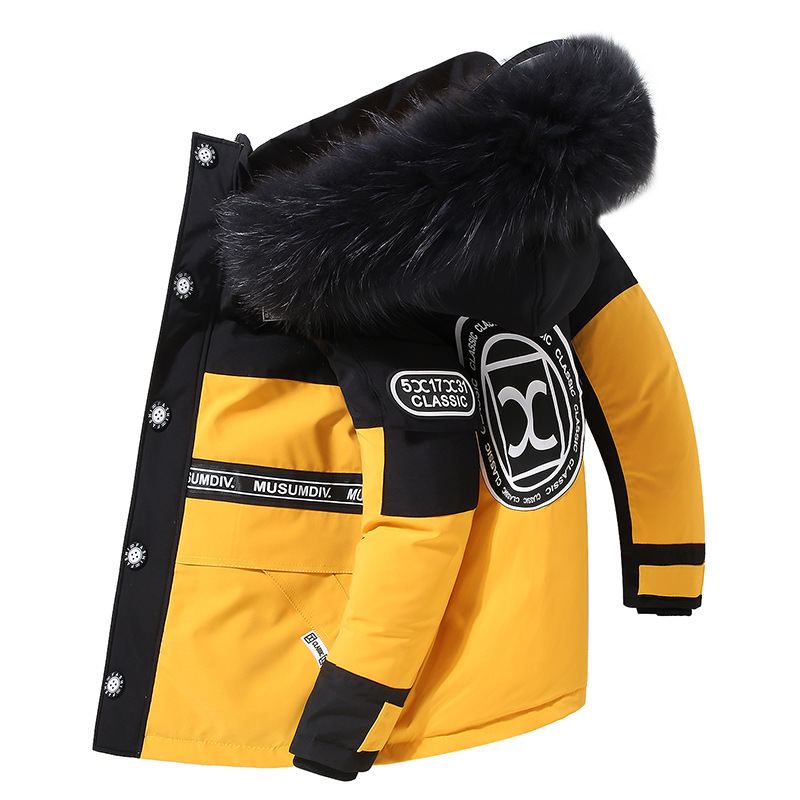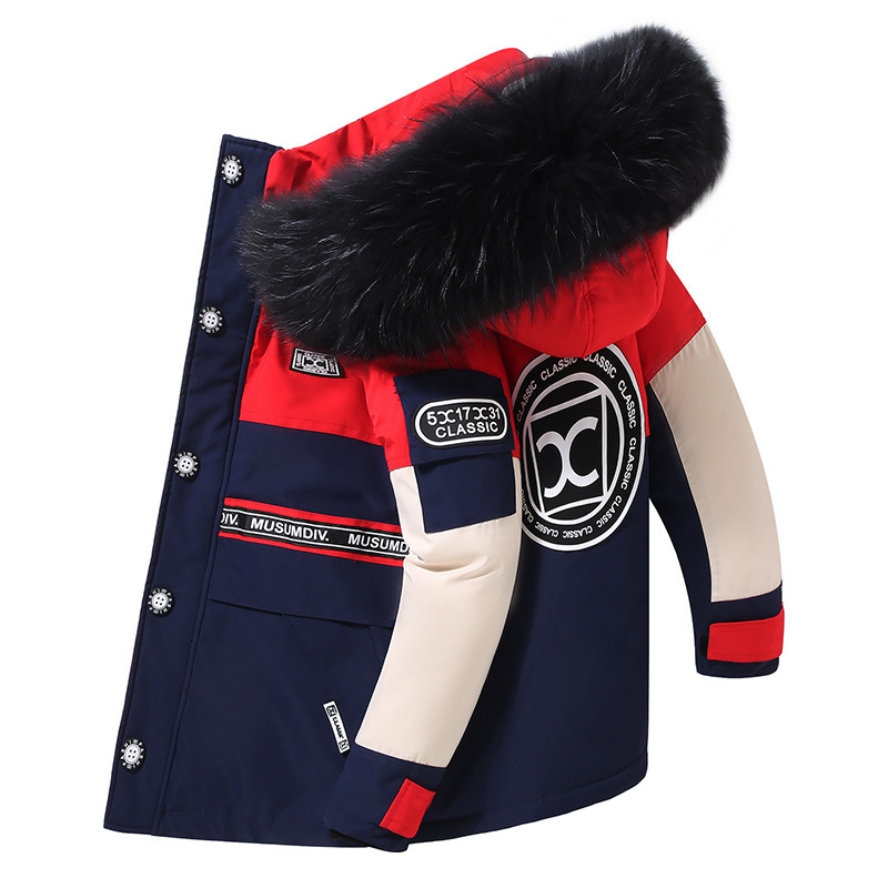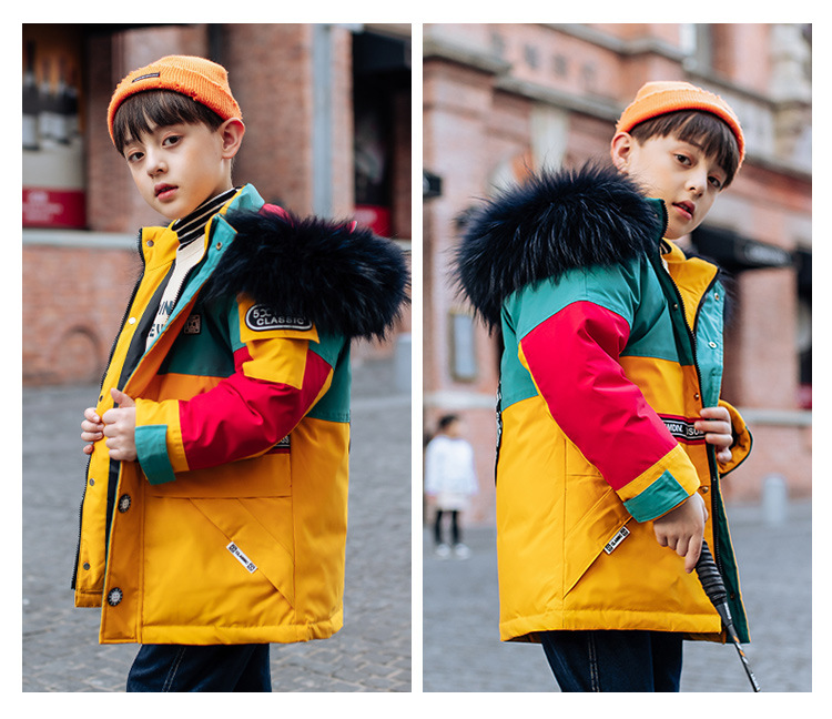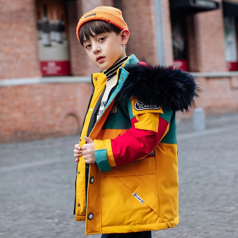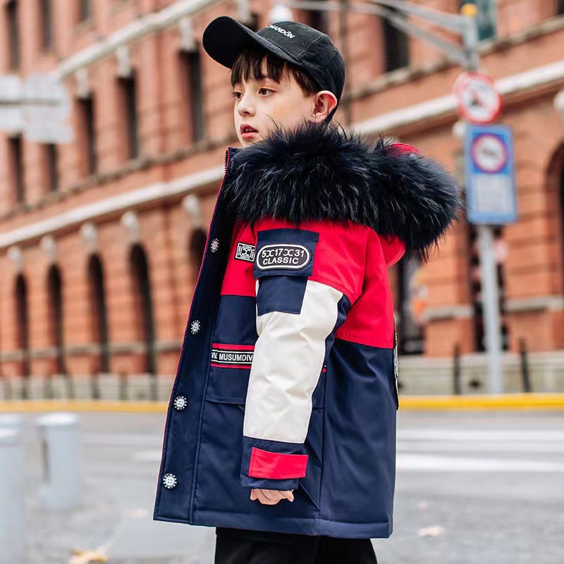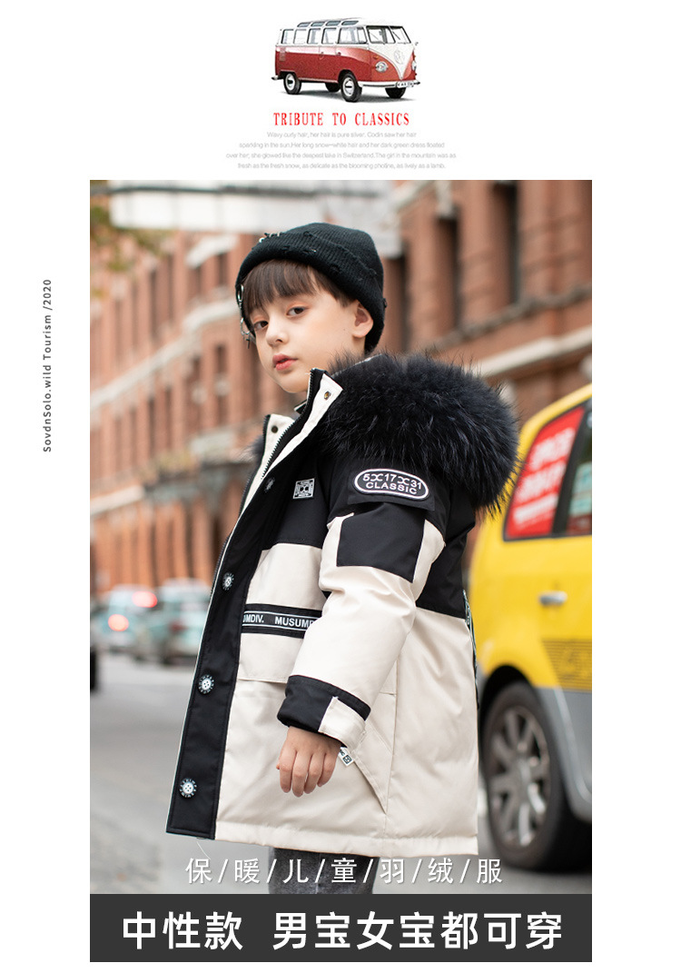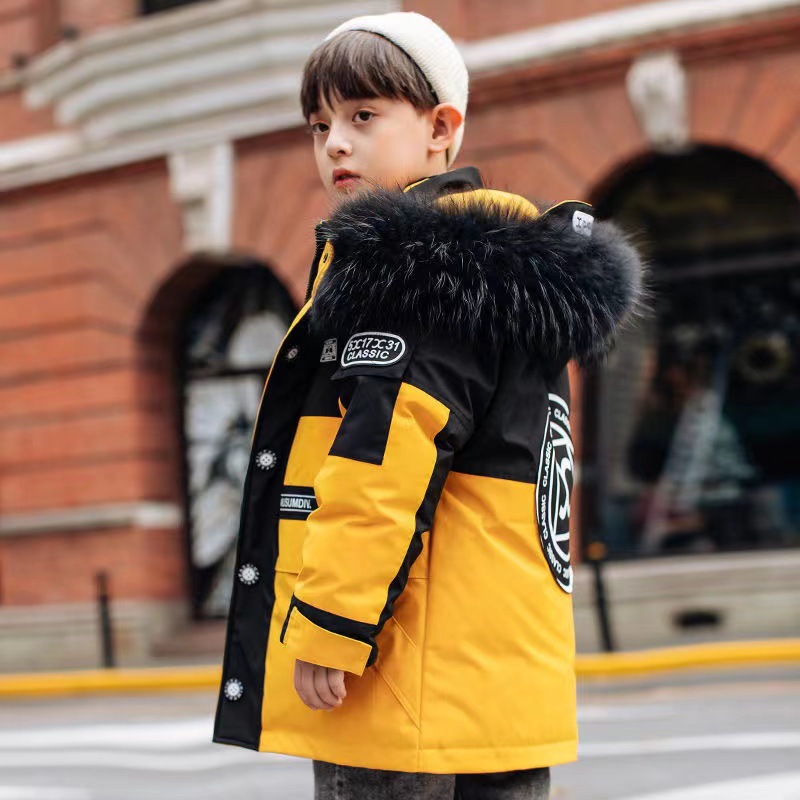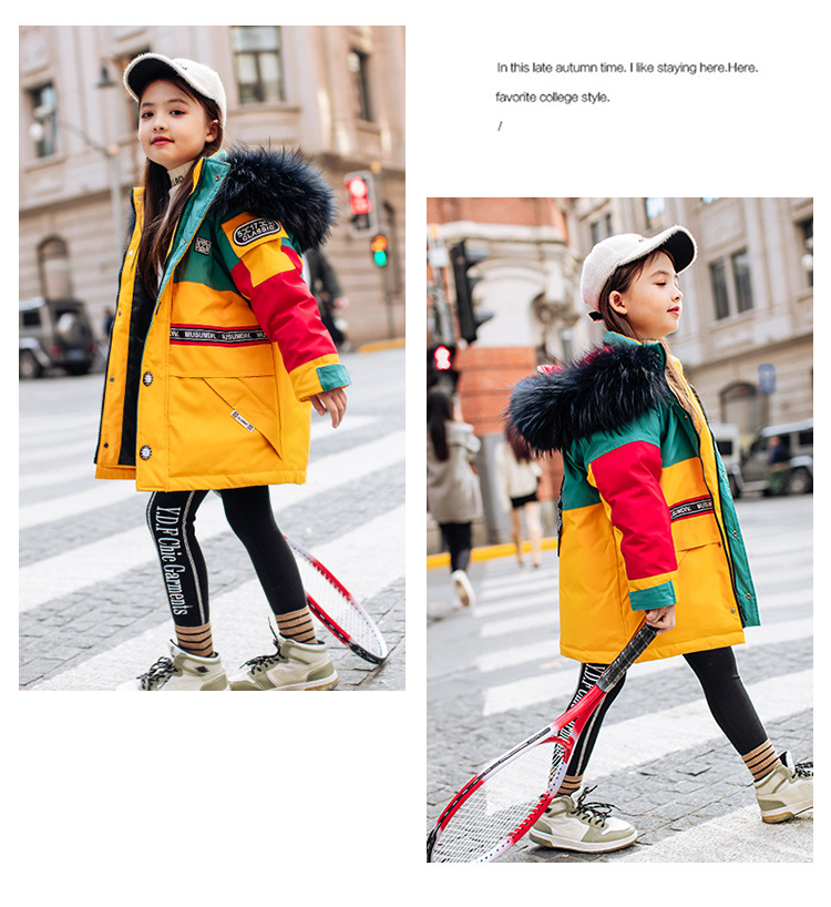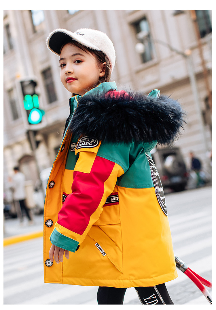 어린이 다운 재킷 남아 중간 길이 2021 새로운 스타일 여아 의류 서양식 남아 중간 길이 겨울 옷 두꺼운 재킷