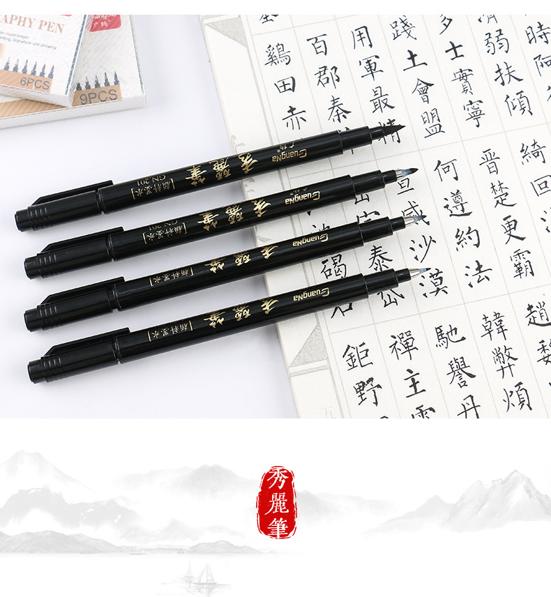 광나 Xiuli 펜 소프트 펜 고우 라인 펜 서예 연습 서명 펜 소형 케이스 중형 블록 하드 펜 잉크 추가 가능스토어 가기