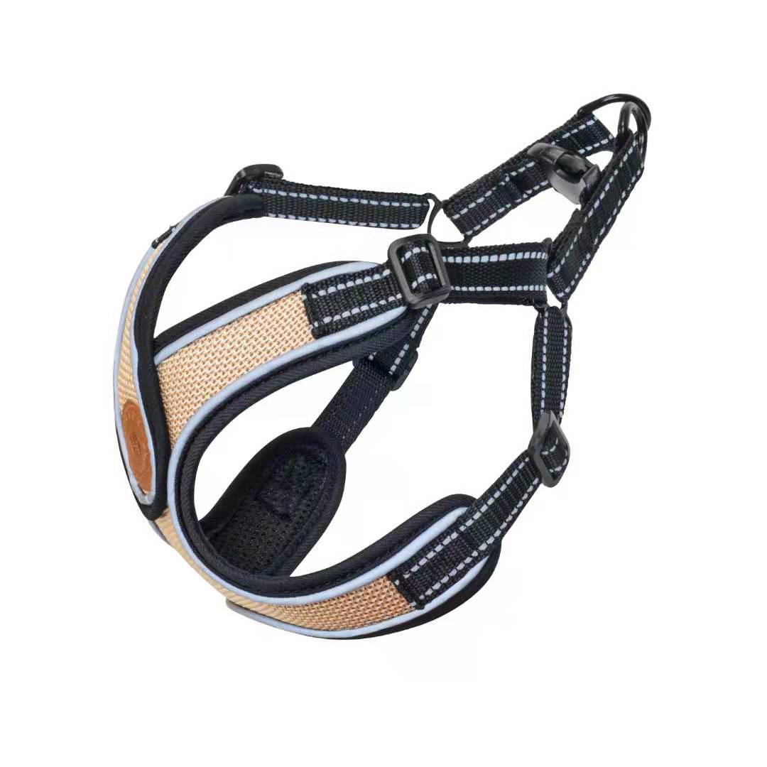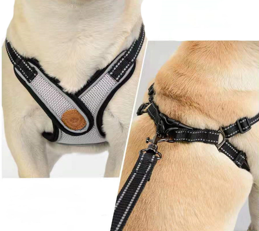 【简要描述】:V型防勒宠物胸背带, 方便狗狗外出,如果你还在担心逛街时独自在家的狗狗无聊寂寞,如果你还在担心想带它出门但又不方便,那么这款胸背带可以完美解决你的担忧,用胸背带套住狗狗,带它一块出门吧。网布设计, 透气舒适, 适合夏天用, 同时胸背设计不会勒到脖子,狗狗出门更嗨皮~