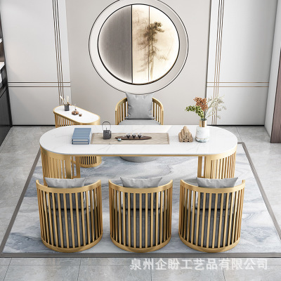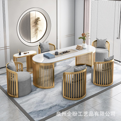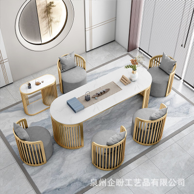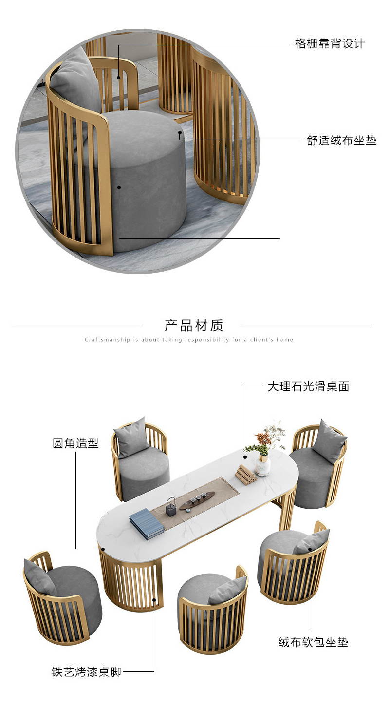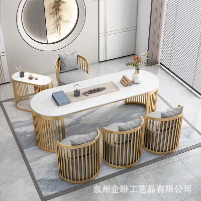 새로운 중국 스타일 단철 대리석 티 테이블 소파 의자 조합 홈 거실 발코니 창조적 인 티 테이블 티 테이블과 의자