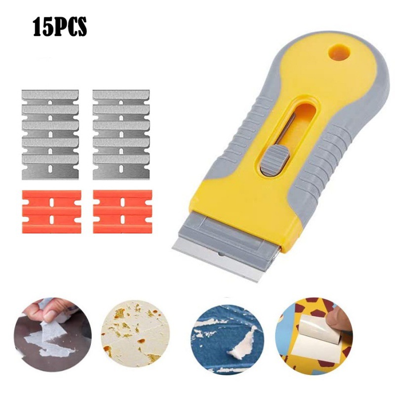• 15 개 세트 (황색 재 스크레이퍼 4 플라스틱 블레이드 10 금속 블레이드 1 개)