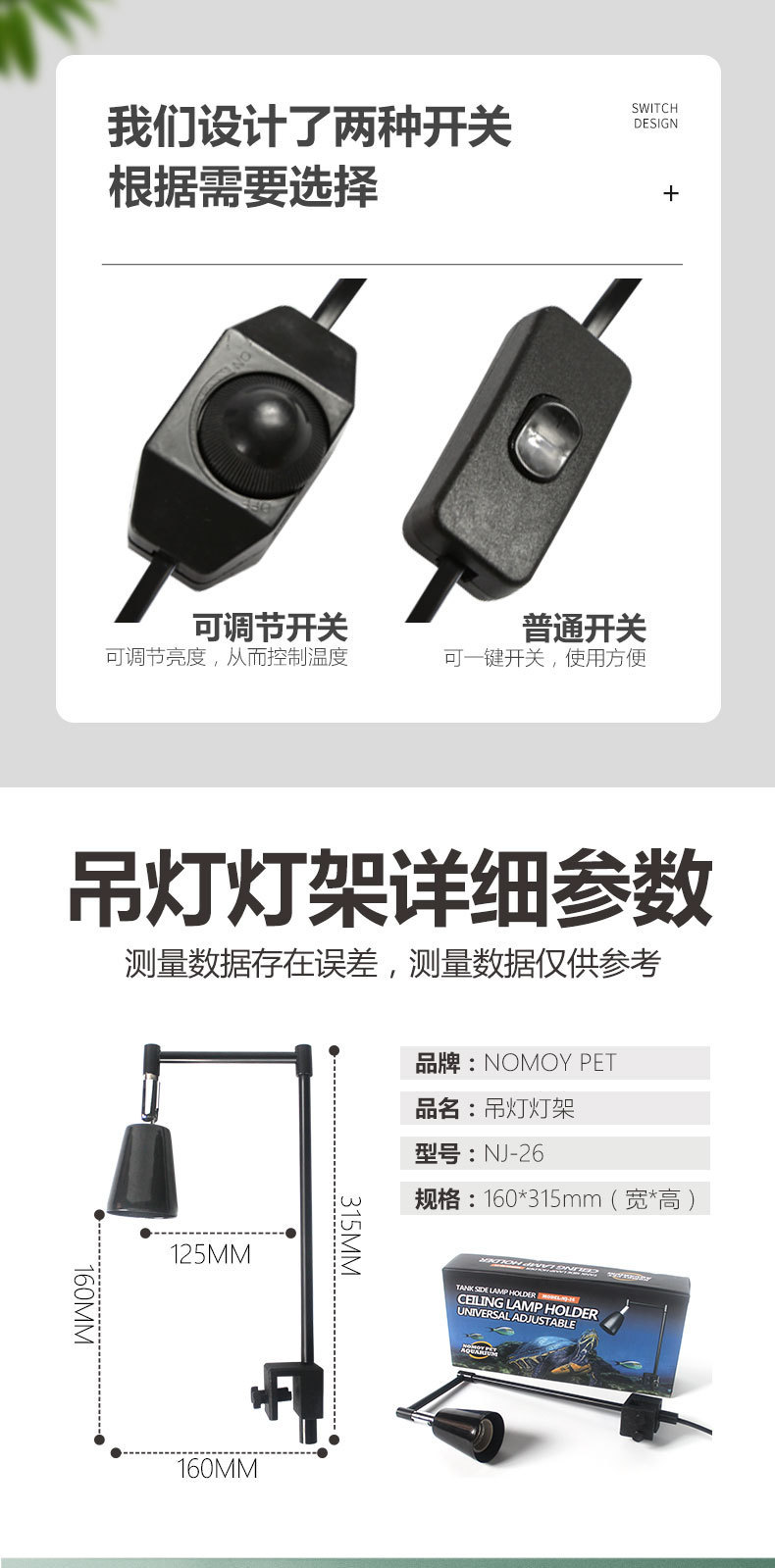 Nomo 거북이 태양 뒤 난방 일정한 온도 애완 동물 실린더 가장자리 유형 직각 일정한 온도 등반 애완 동물 애완 동물 샹들리에 램프 홀더