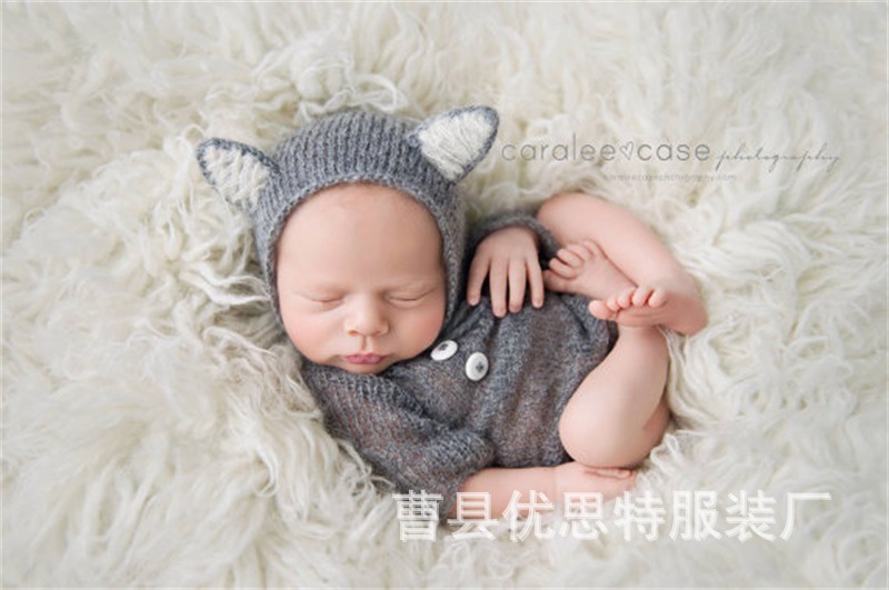 신생아 보름달 아기 사진 소품 창조적 인 의류 백일 예술 사진 옷 귀여운 모양 니트 세트