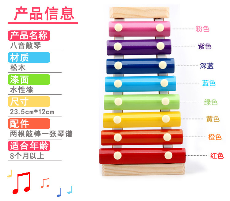 유아 및 어린 이용 8 톤 핸드 노크 실로폰 8 개월 아기의 교육 조기 교육 음악 장난감 1-2-3 세스토어 가기