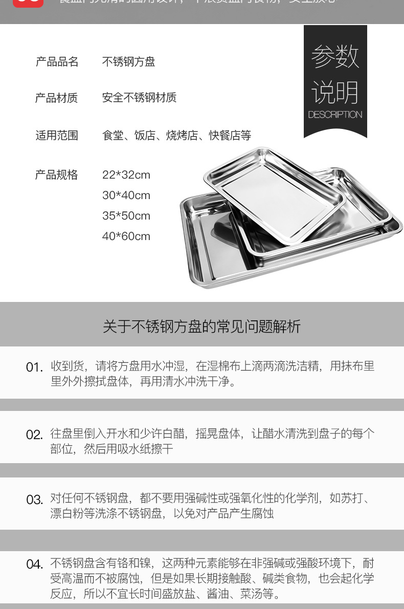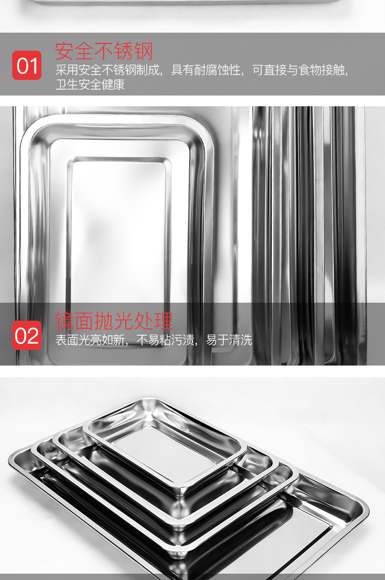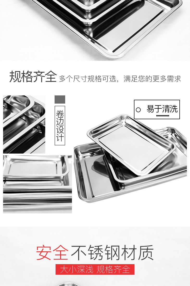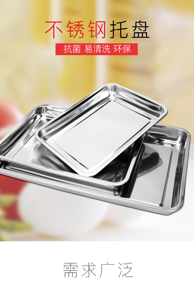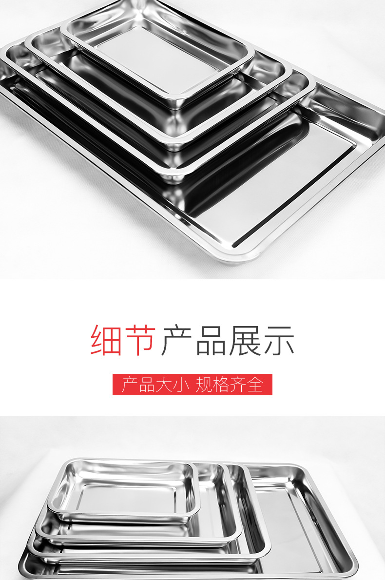 304 스테인레스 스틸 사각 플레이트 평면 바닥 직사각형 플레이트 오븐 베이킹 플레이트 찐 케이크 밥 창자 플레이트 의료 두꺼운 트레이