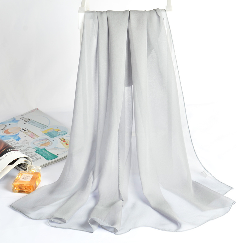 봄과 가을 작은 실크 스카프 여성용 한국식 자외선 차단제 스카프 얇은 긴 단색 스카프 장식 숄 조젯 여름스토어 가기