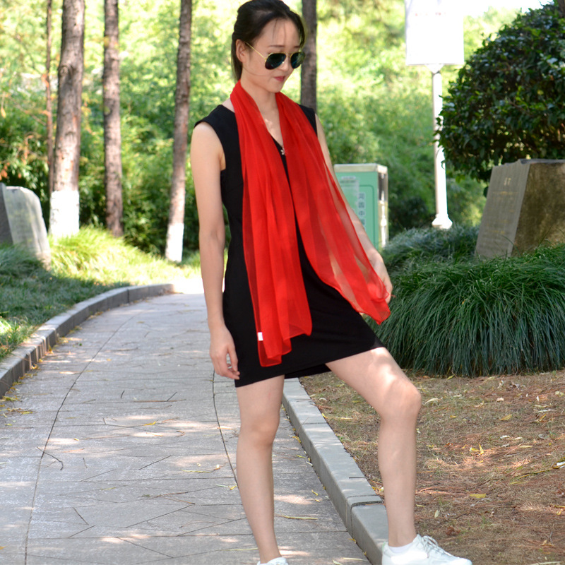 春秋小丝巾女韩版防晒围脖纱巾薄长款纯色围巾装饰披肩乔其纱夏季