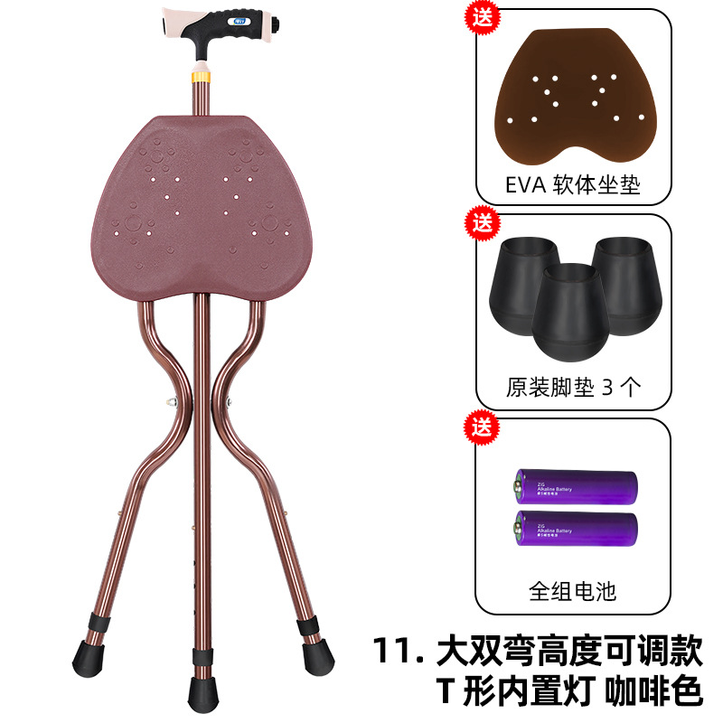 • 09 높이 조절 + 외부 조명 T 자형 그립 + 다크 브라운-대형 이중 곡선 프레임
