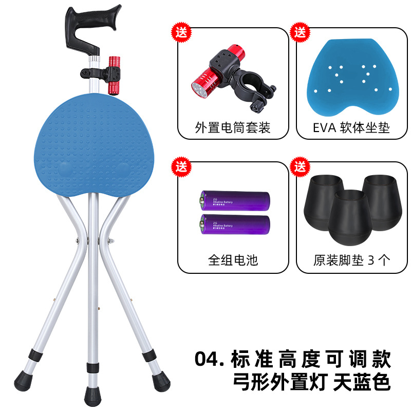 앉아있는 보드 워킹 스틱 의자가있는 노인의 목발 의자 앉아있는 조정 가능한 경량 텔레스코픽 다기능 4 족 목발 스틱스토어 가기