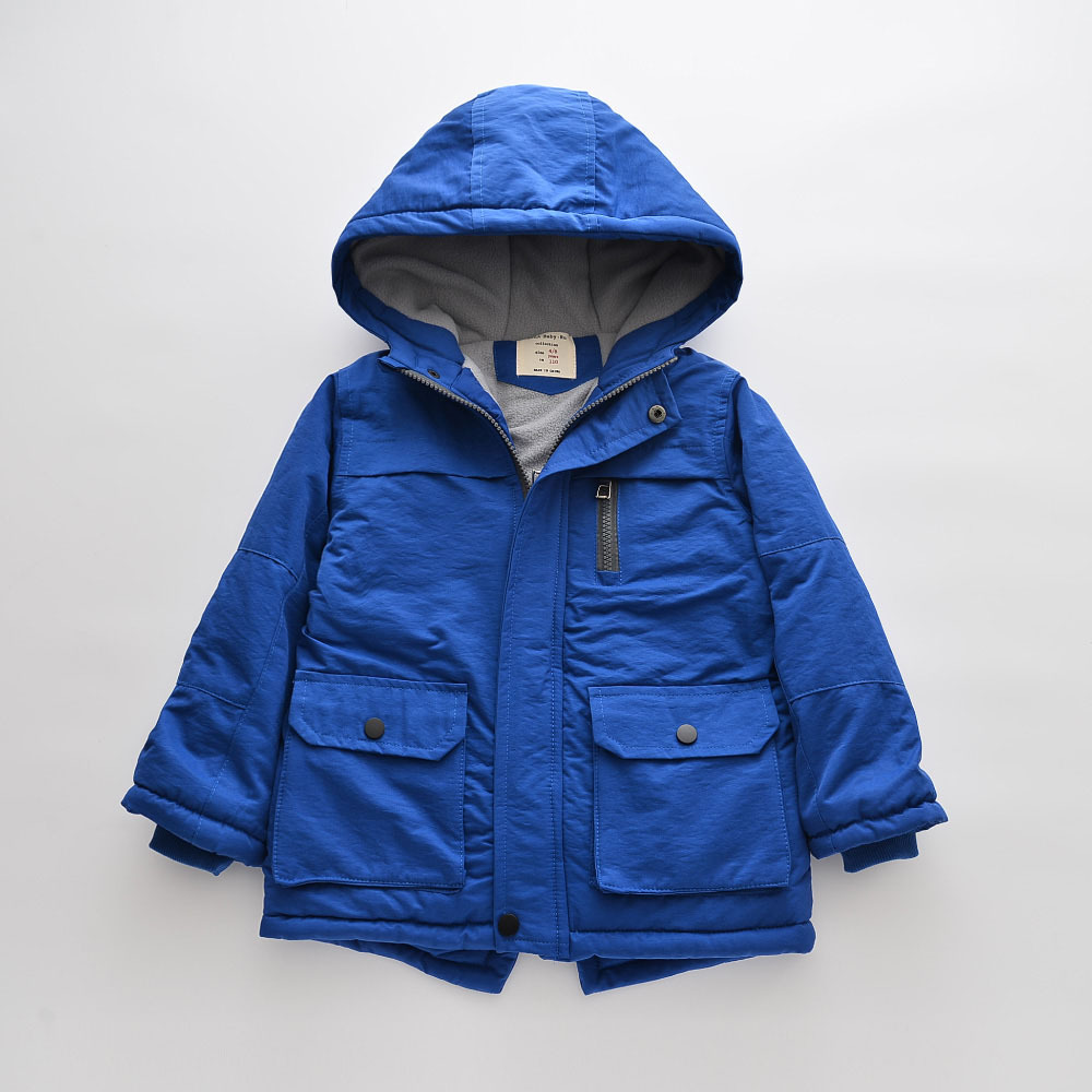 2021冬季新款 加绒加厚 男童多口袋连帽棉衣外套