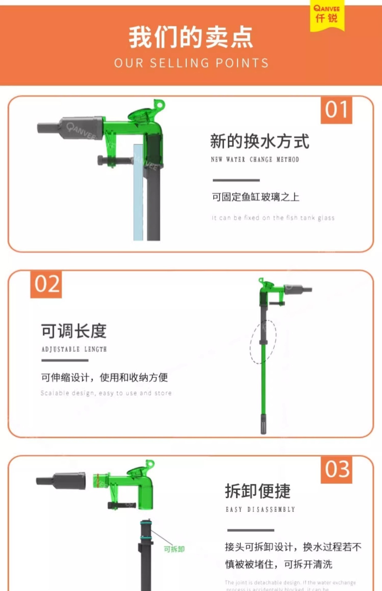 Qianrui 물 교환기, 수조 특수 수동 펌핑 및 모래 세척 도구, 수족관 자동 청소 및 오줌 흡입 도구