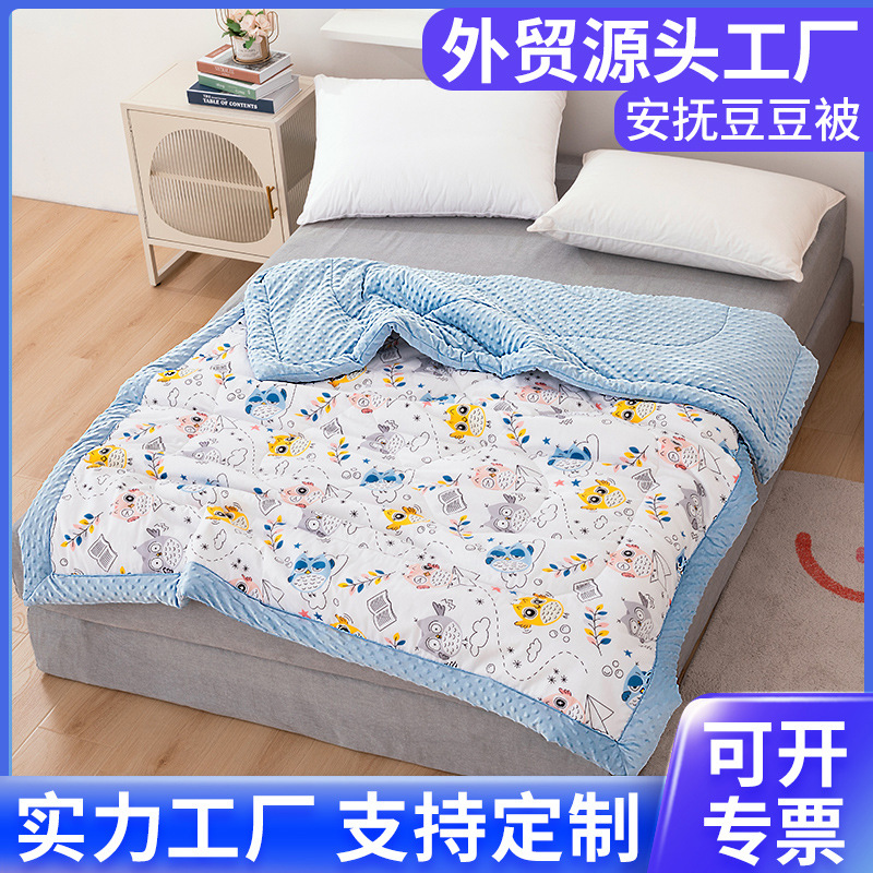 灰色圣诞恐龙蓝色夏威夷蓝色小熊玉色动物园玉色小马厂家直销全棉婴儿豆豆被宝宝安抚夏凉被春秋被可水洗幼儿园小被子