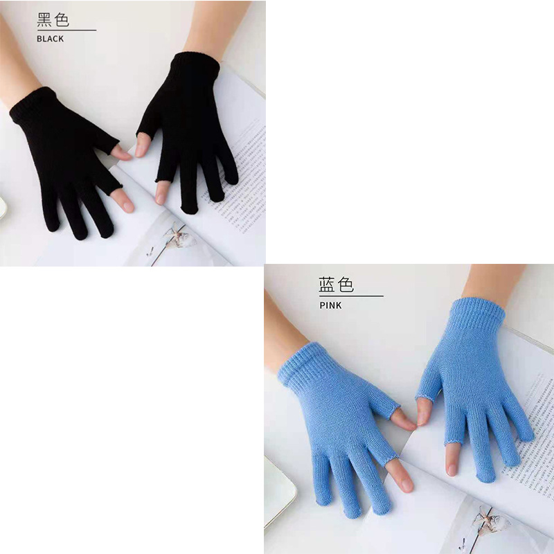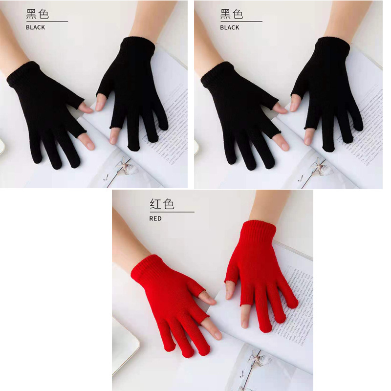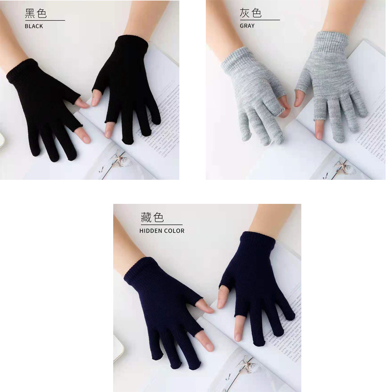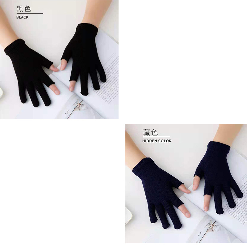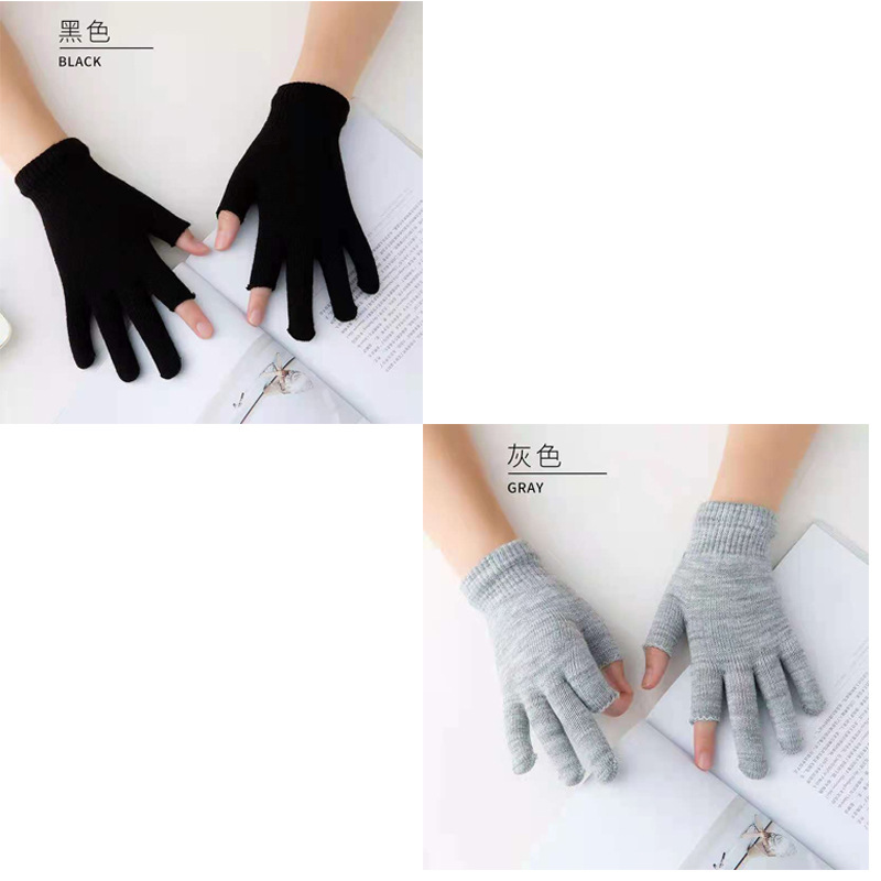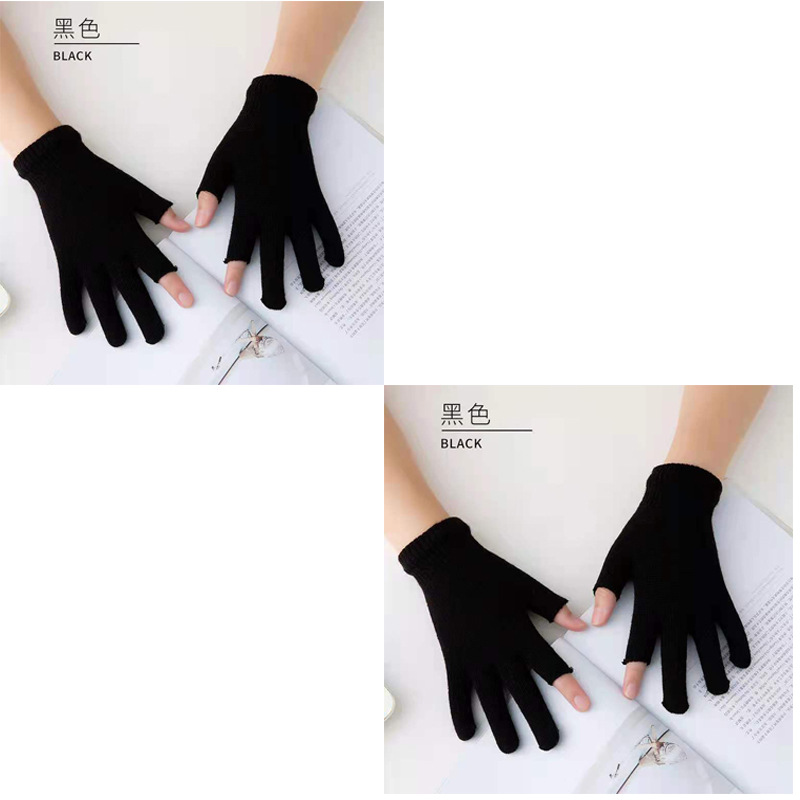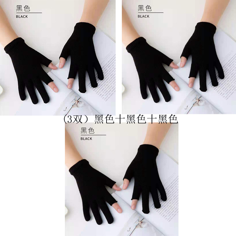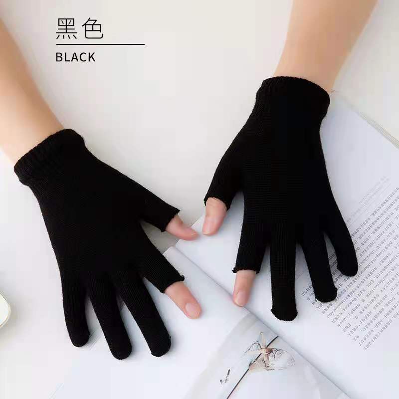 9.9 가을과 겨울 블랙 흑백 따뜻한 이슬 두 손가락 재고 유니버설 반 손가락 장갑 학생 쓰기 터치 스크린 울