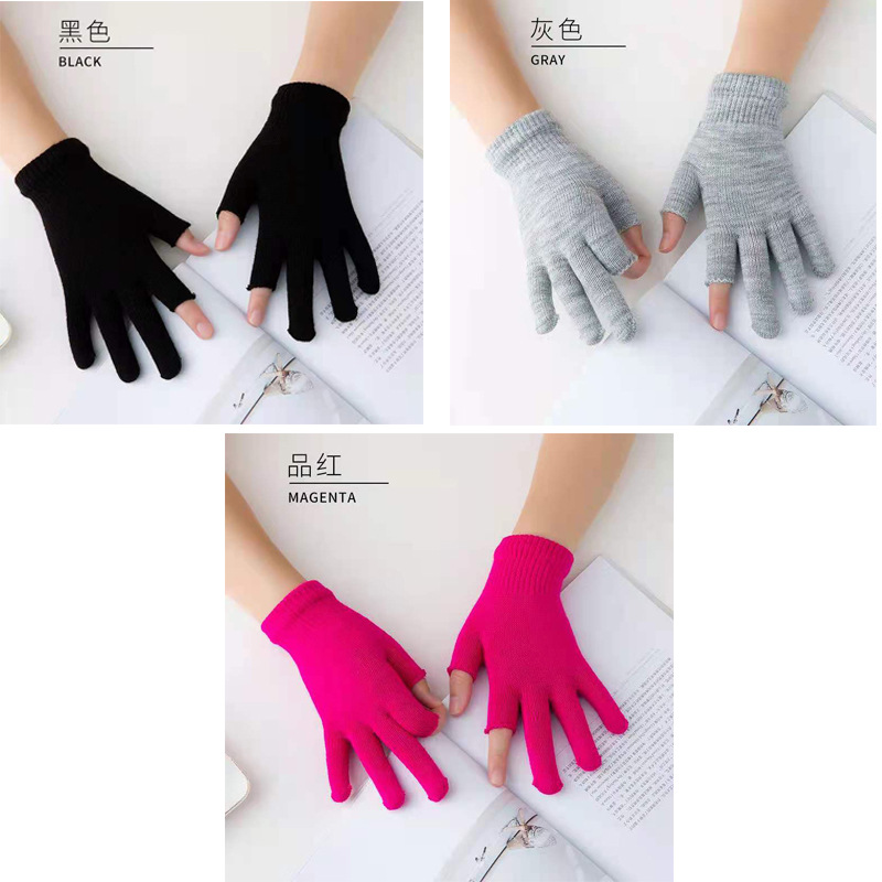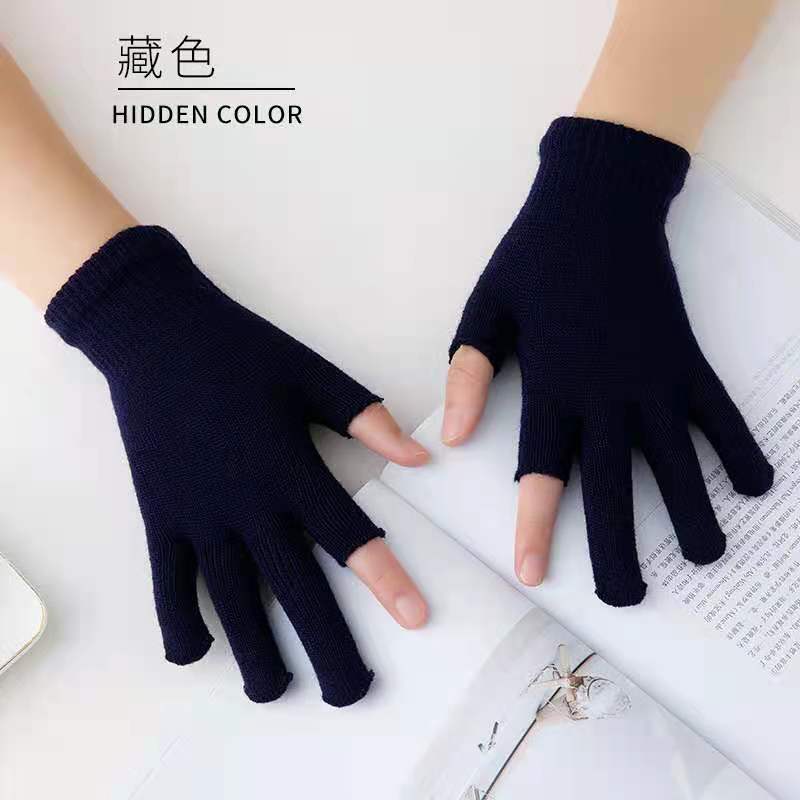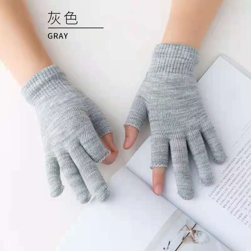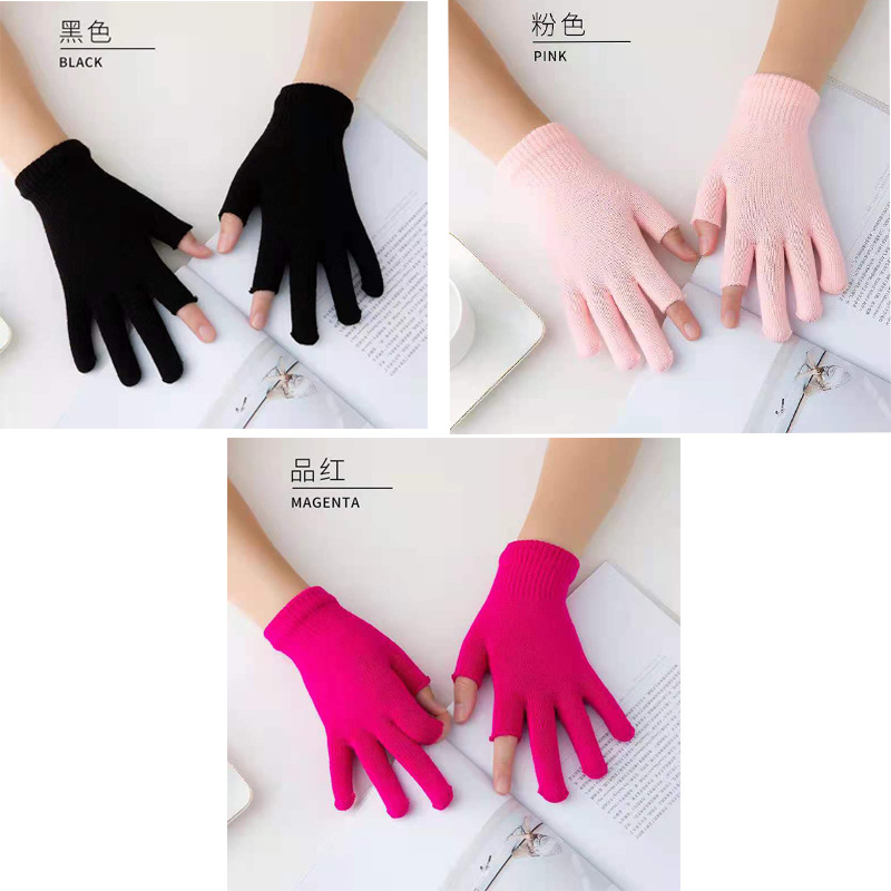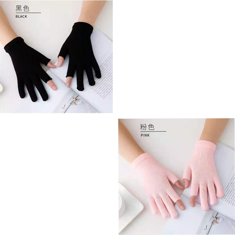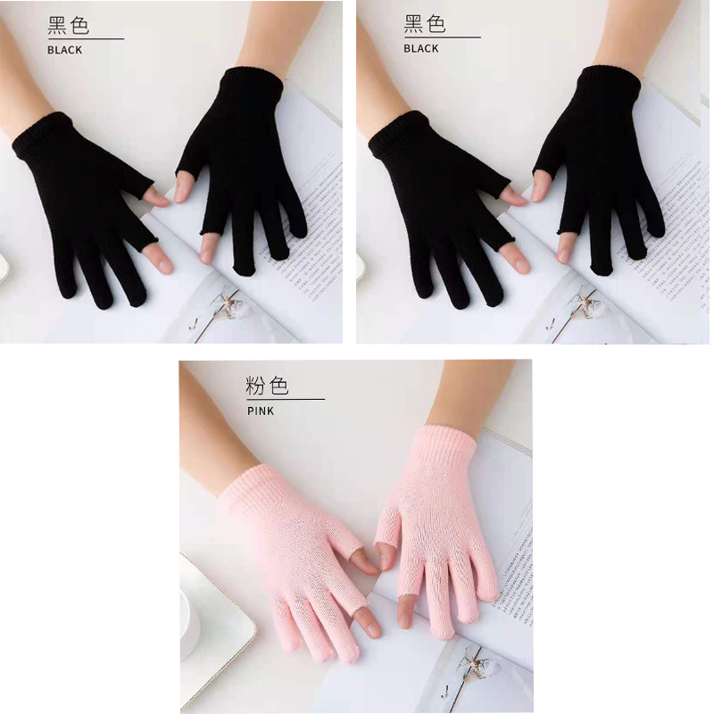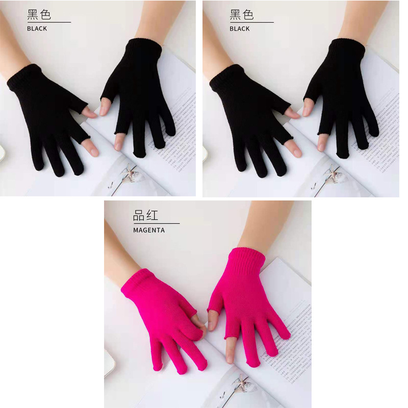9.9 가을과 겨울 블랙 흑백 따뜻한 이슬 두 손가락 재고 유니버설 반 손가락 장갑 학생 쓰기 터치 스크린 울
