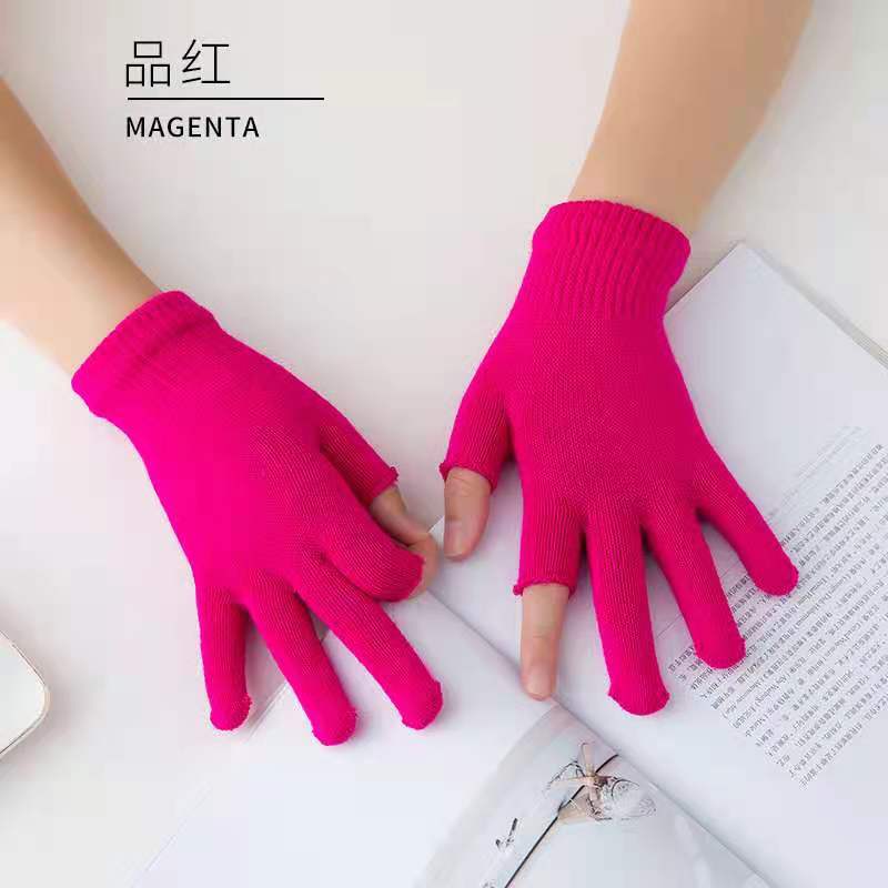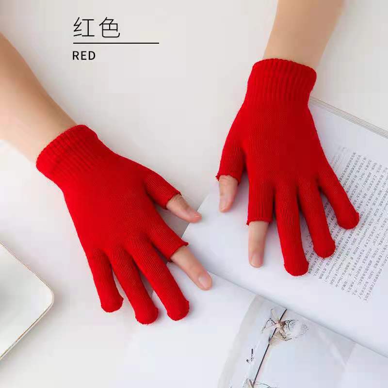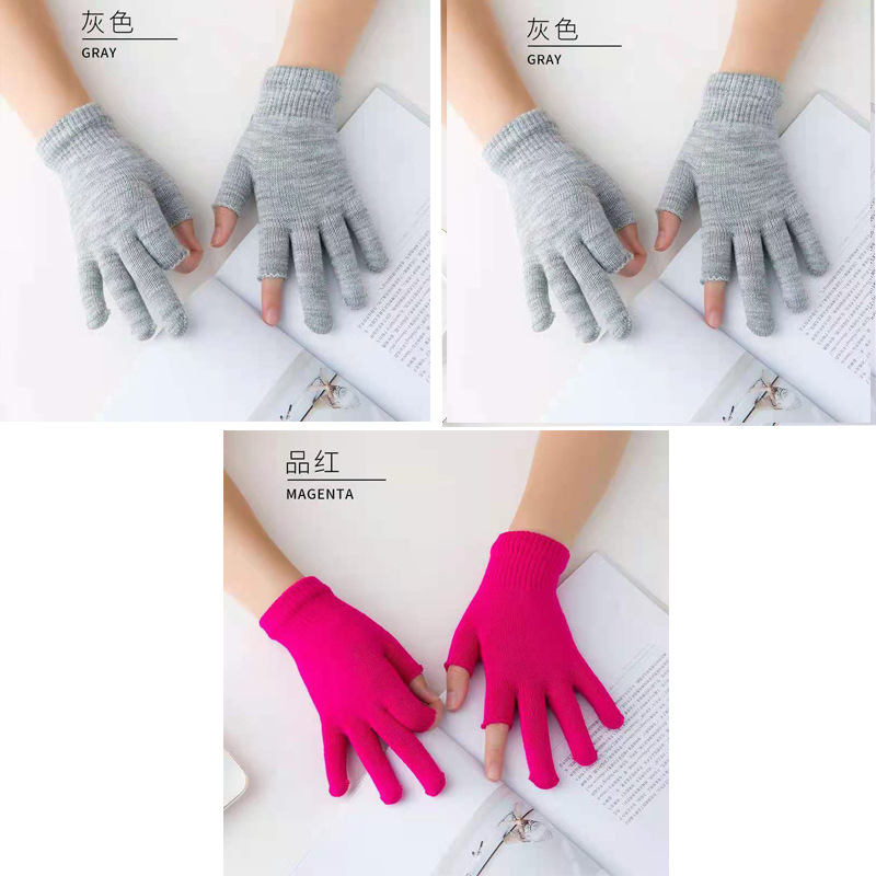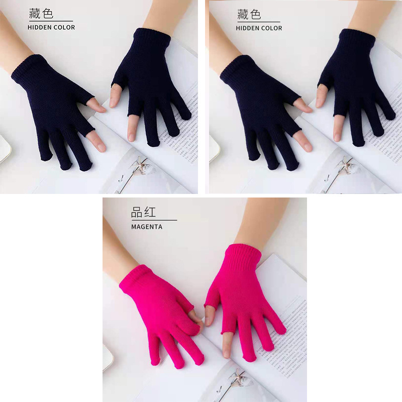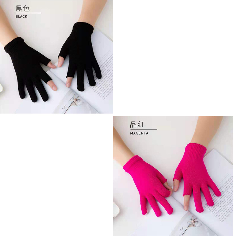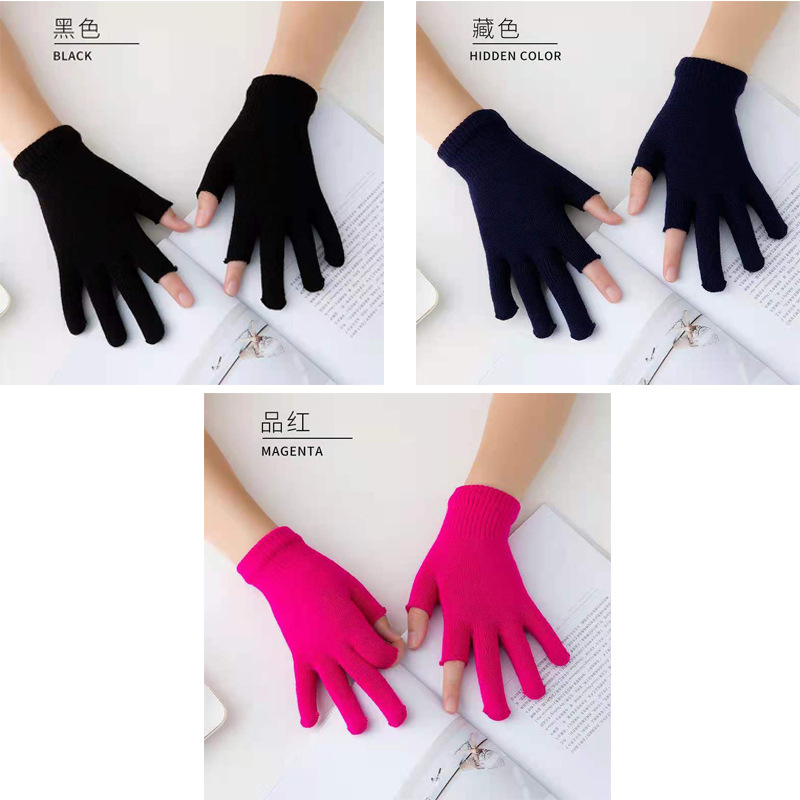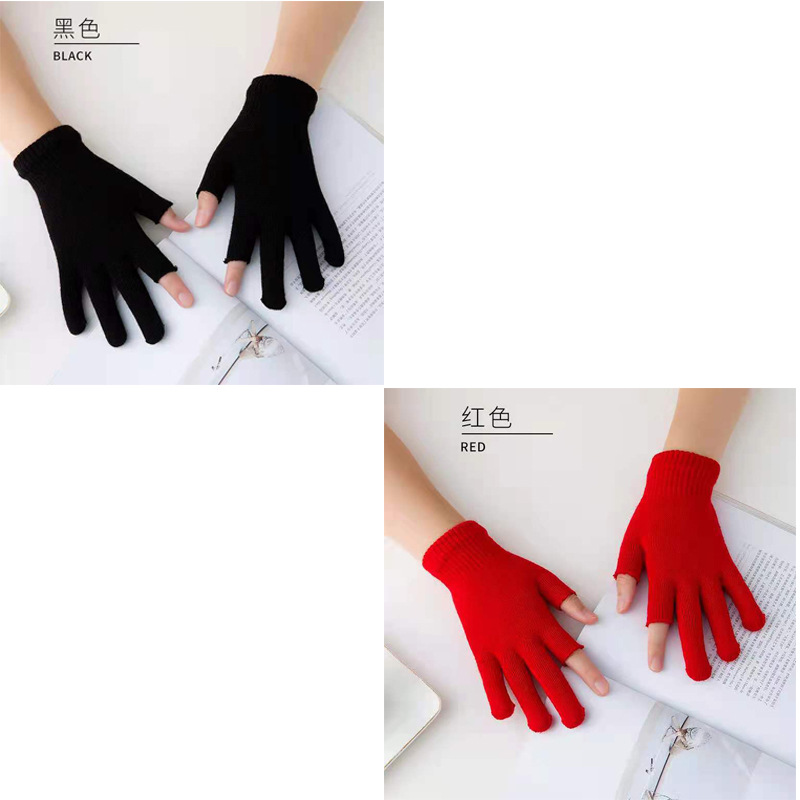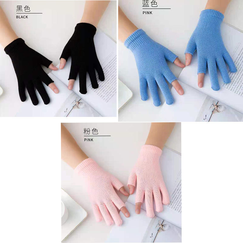 9.9 가을과 겨울 블랙 흑백 따뜻한 이슬 두 손가락 재고 유니버설 반 손가락 장갑 학생 쓰기 터치 스크린 울