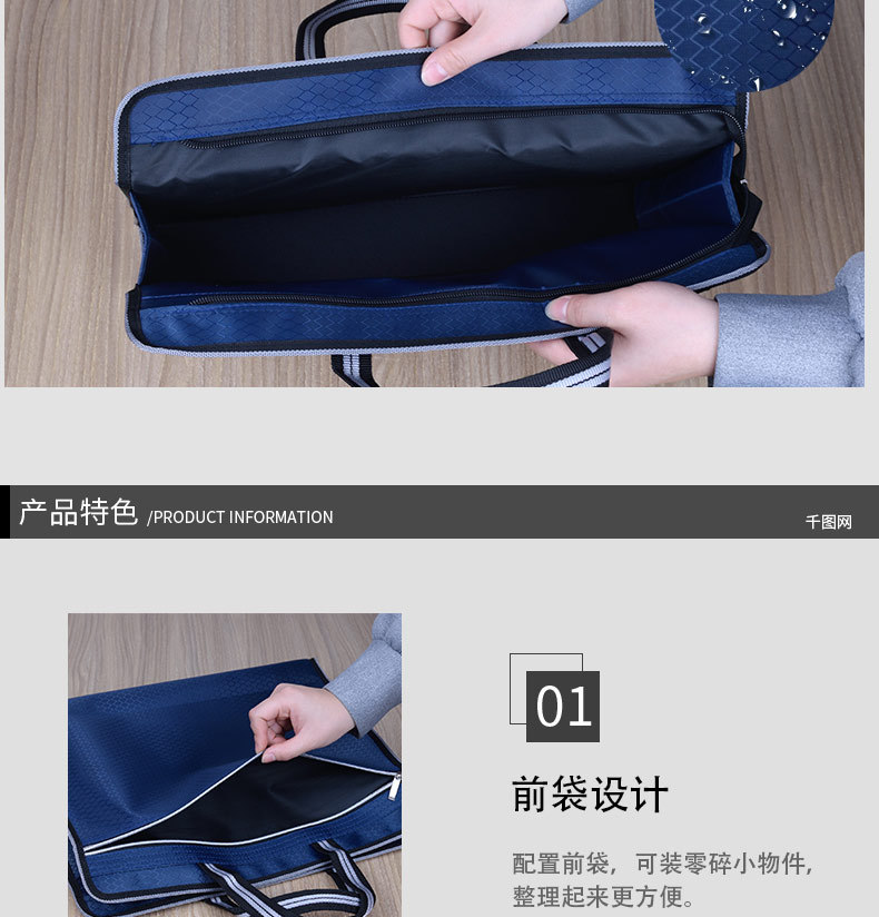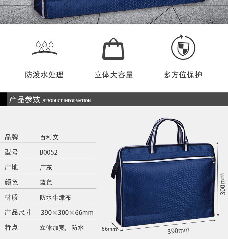 Baili B0052 휴대용 파일 가방 캔버스 핸드백 메이크업 사무실 회의 방수 파일 키트