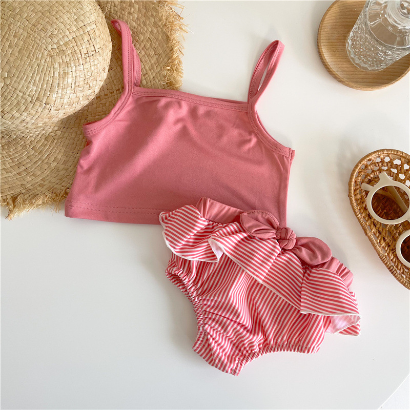 여름 유아 수영복 수영 팬츠 끈 수영복 리본 여자 아기 수영복 비치웨어