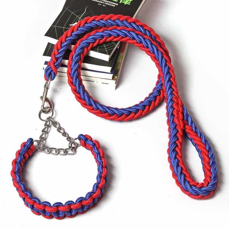 나일론 8 가닥 로프 꼰 개 로프 조정 가능한 2 색 칼라 애완 동물 개 견인 로프 개 체인 제조 업체 도매스토어 가기