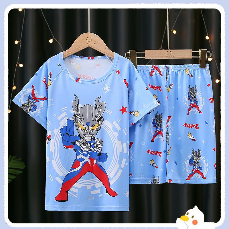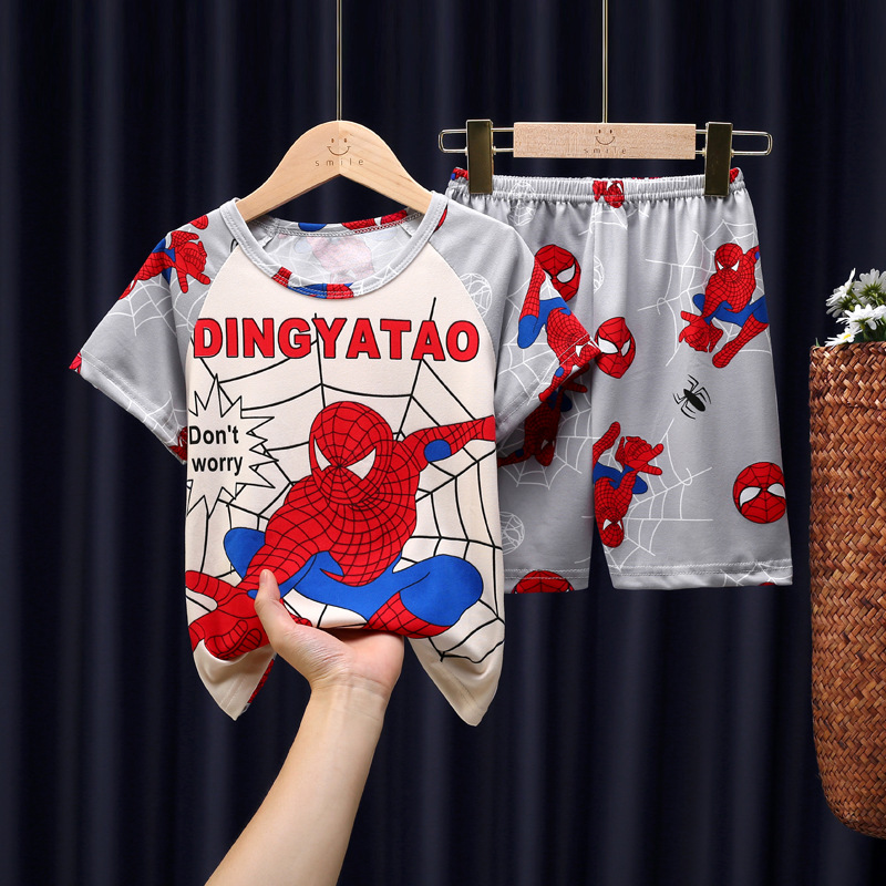 어린이 잠옷 여름 반팔 소년 어린이 귀여운 만화 소녀 어린이의 얇은 가정 옷 세트