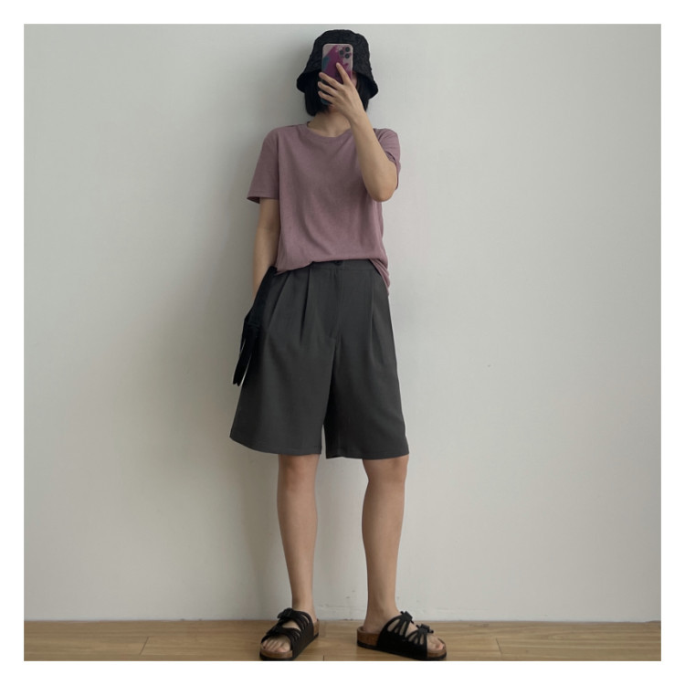 여성을위한 Mupin 느슨한 면화와 린넨 반팔 티셔츠 여름 한국 대나무 면화 솔리드 컬러 라운드 넥 탑 바닥 셔츠