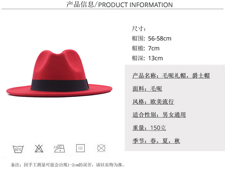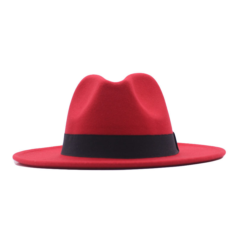 심플 모직 펠트 큰 챙 모자 트렌디 한 유럽과 미국 대외 무역 새로운 여성용 모직 모자 영국 스타일 패션 재즈 탑 모자