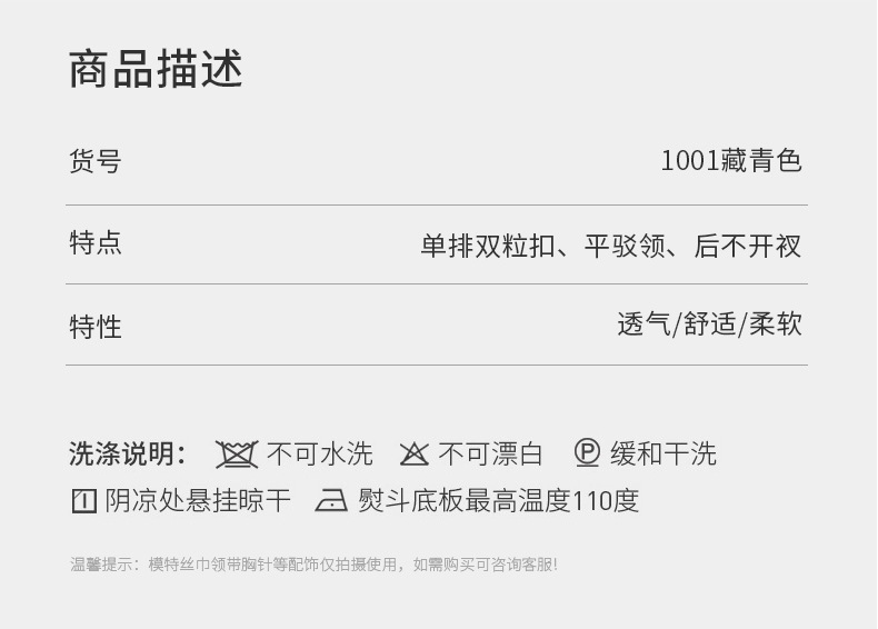 产品只含西服和西裤,衬衫、领带等搭配和配饰需单独购买!