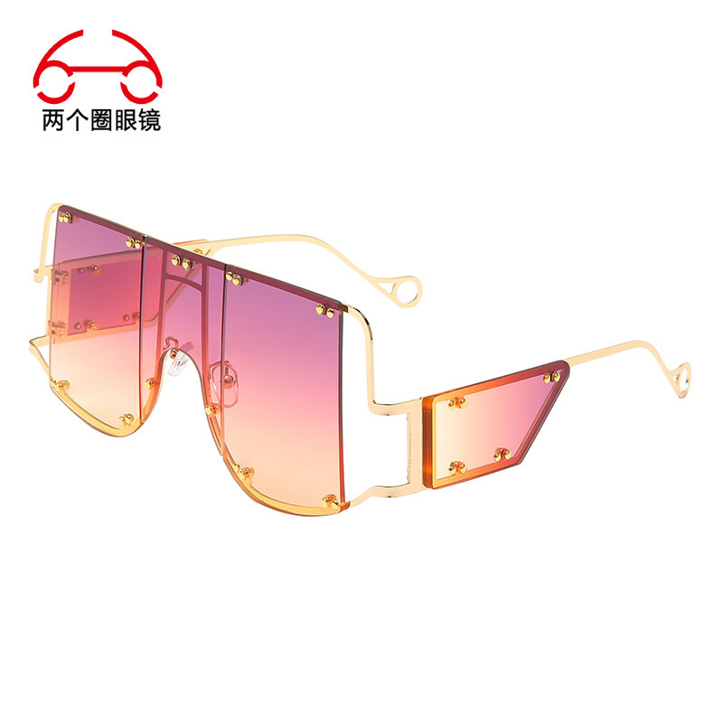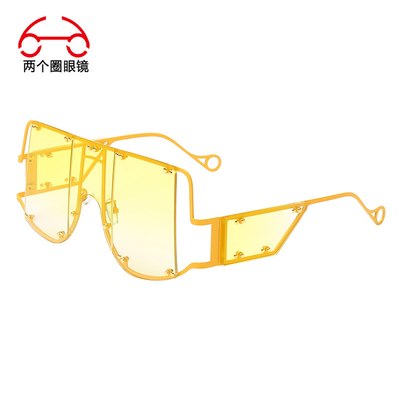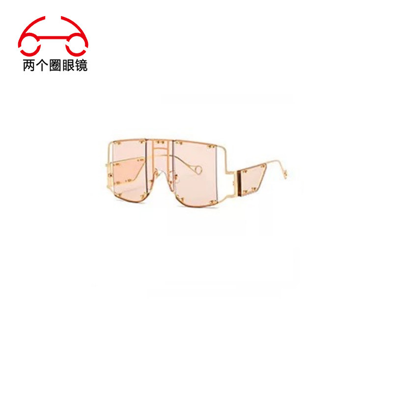 투 서클 유럽 및 미국 펑크 스타일 여성용 선글라스, 리벳 장식, 복고풍 대형 프레임, 일체형 UV 쇼 선글라스스토어 가기
