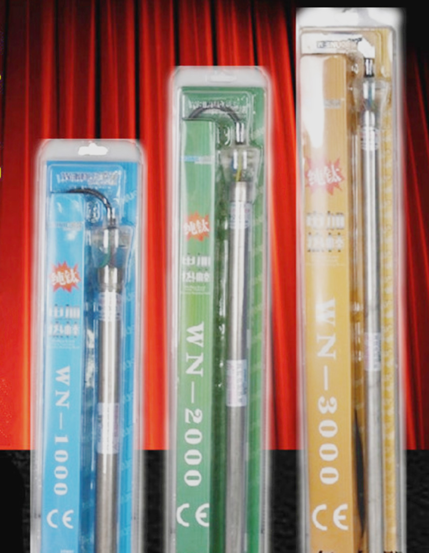 专门为鱼池 大型鱼缸设计的一款加热棒 、钛加热棒的标志 质量有保障 钛金是一种防腐性、强的材质,控温,带LED显示温度,高质钛金属材质,电镀外表,发热均匀。同样的功率,本品更省电,更可靠,、好的加热棒 。