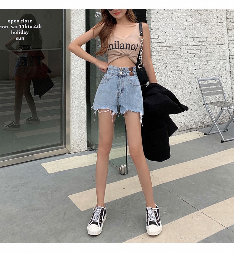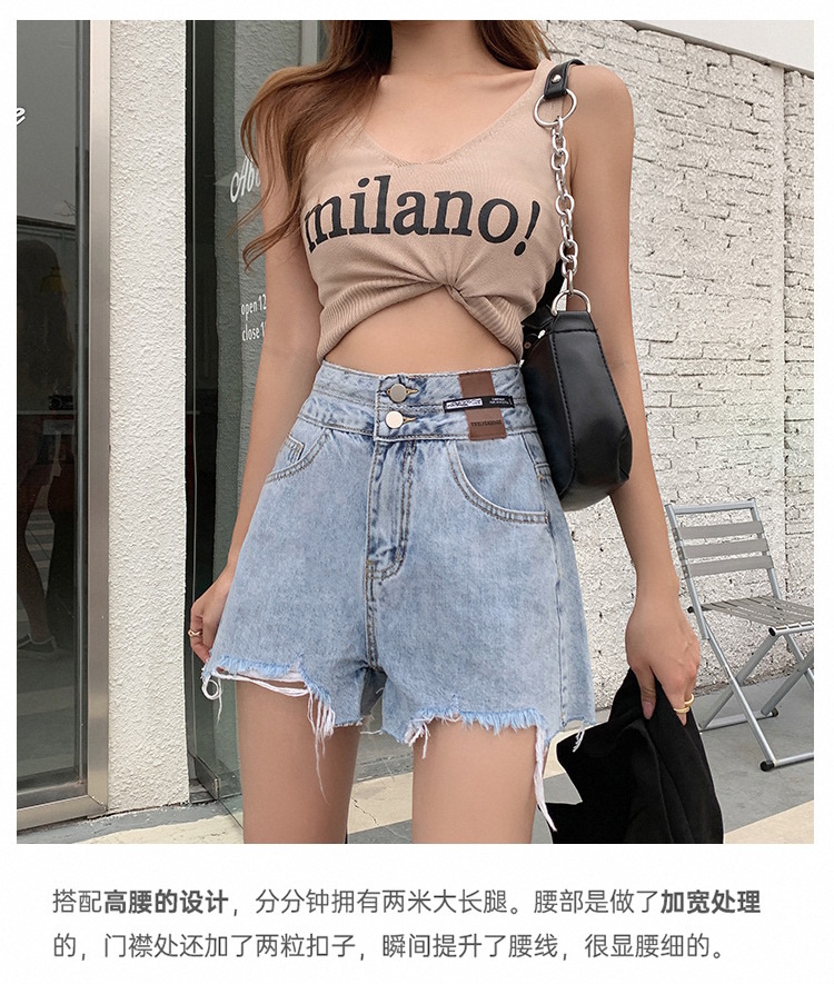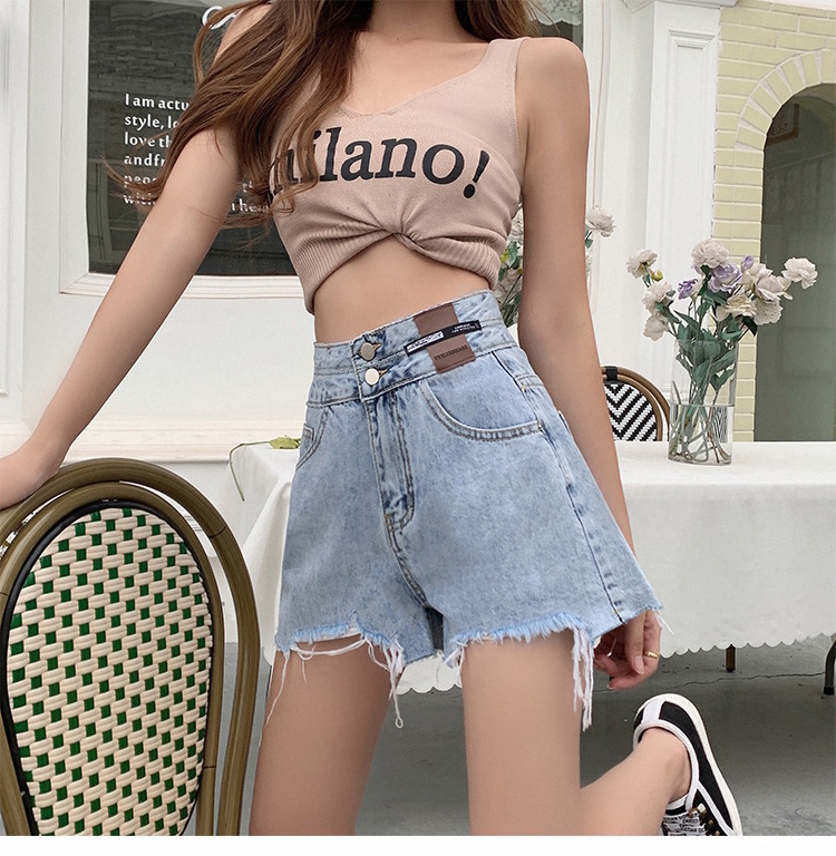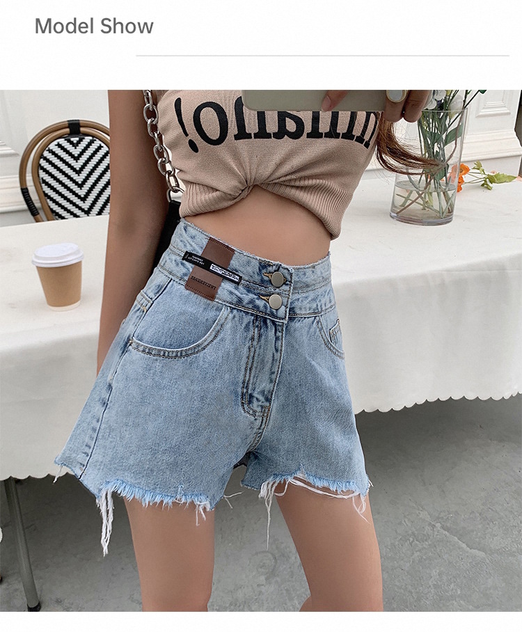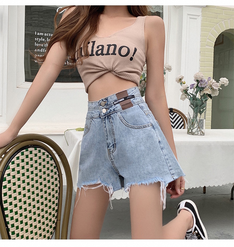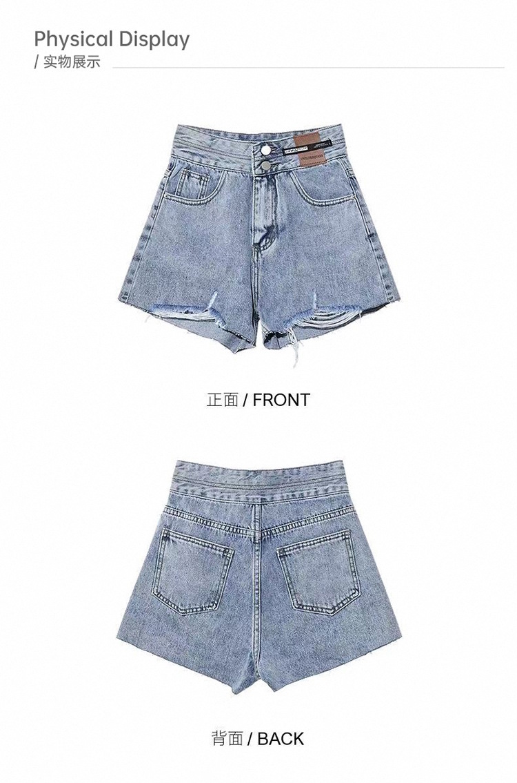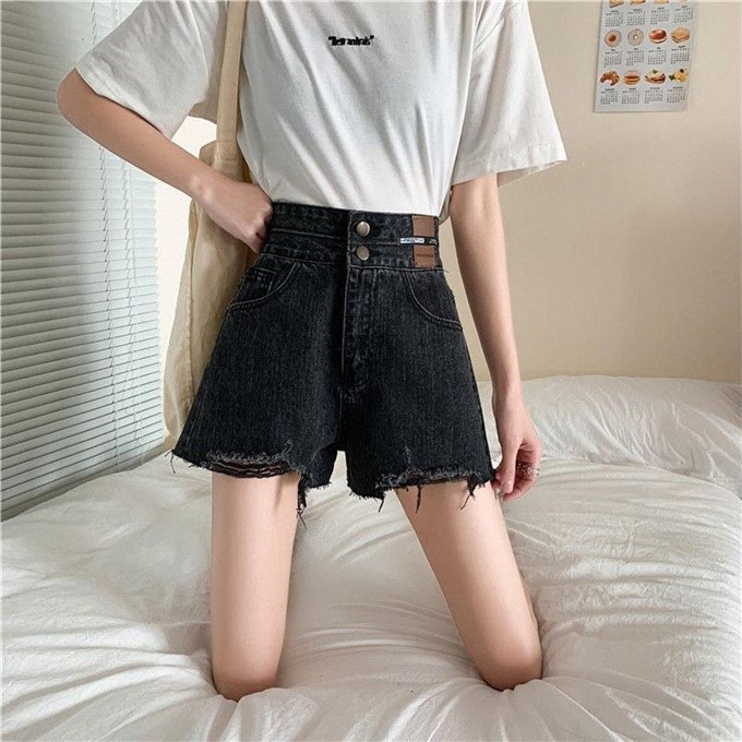 신상품 데님 반바지 여성용 여름 느슨한 한국 스타일 하이 웨이스트 슬리밍 사이버 연예인 찢어진 스트레이트 와이드 레그 A 라인 핫 팬츠 인 트렌디스토어 가기