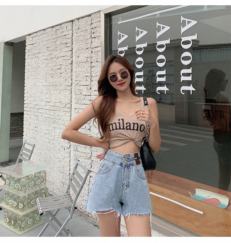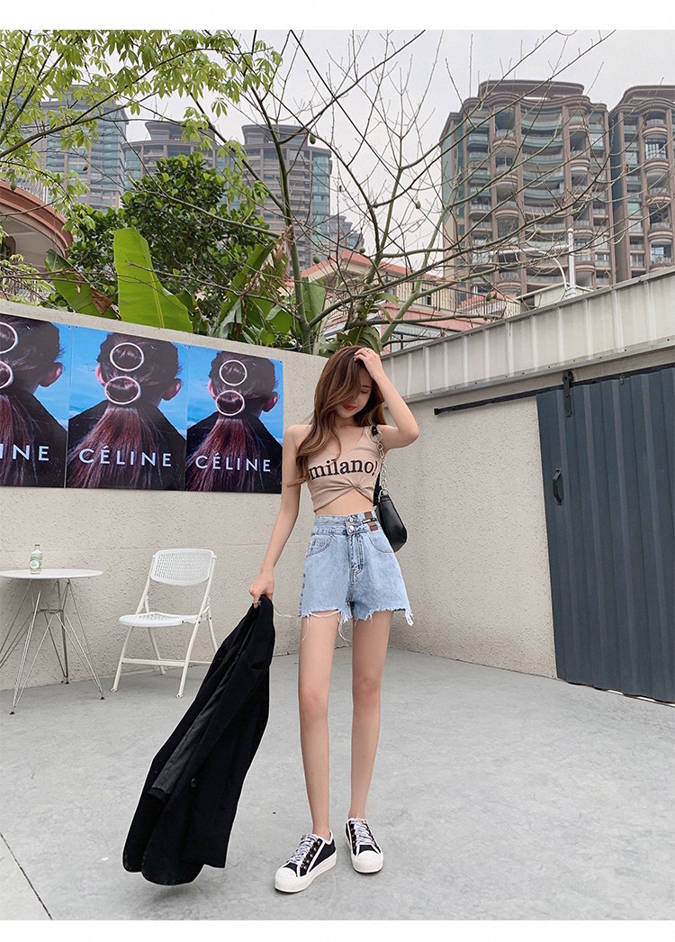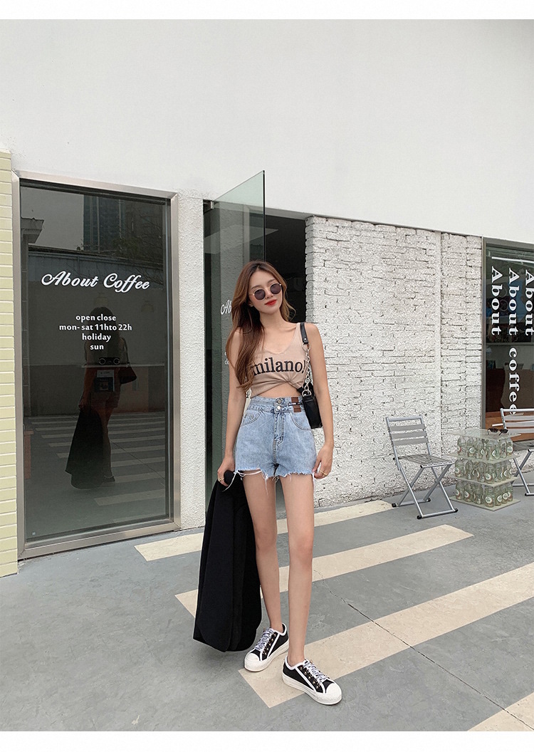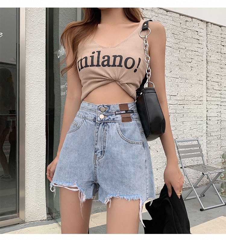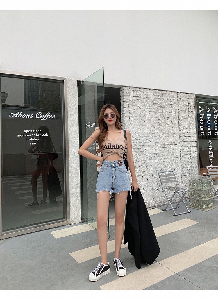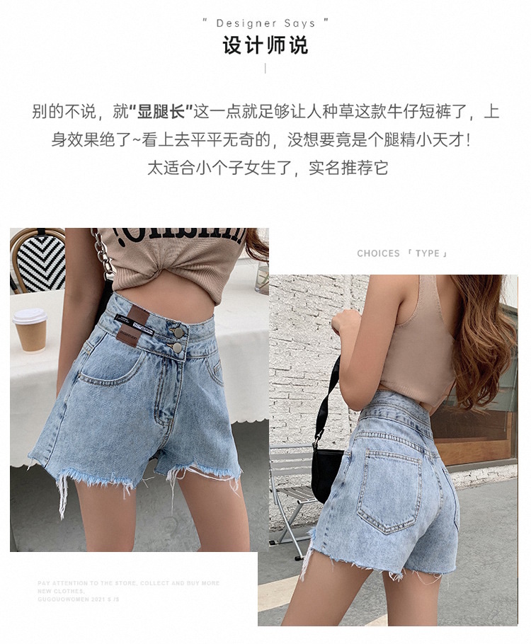 신상품 데님 반바지 여성용 여름 느슨한 한국 스타일 하이 웨이스트 슬리밍 사이버 연예인 찢어진 스트레이트 와이드 레그 A 라인 핫 팬츠 인 트렌디스토어 가기