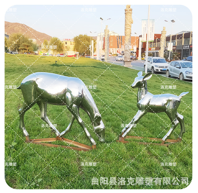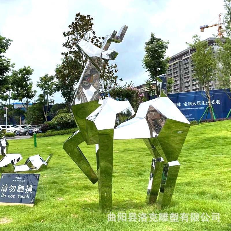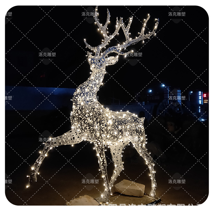 스테인레스 스틸 중공 빛 빛나는 새끼 사슴 조각 기하학적 사슴 패싯 사슴 정원 풍경 스테인레스 스틸 사슴 동물 조각스토어 가기