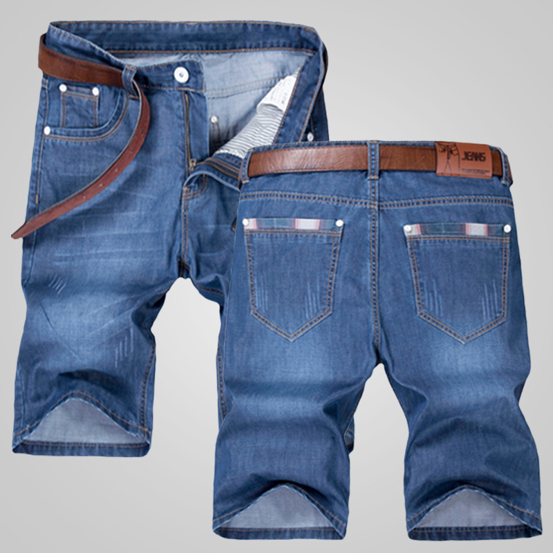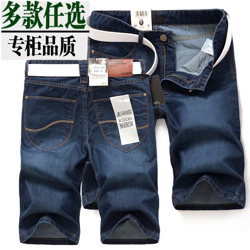 초대형 5 점 데님 반바지 남자의 여름 얇은 느슨한 뚱뚱한 남자 높은 탄성 허리 자른 바지