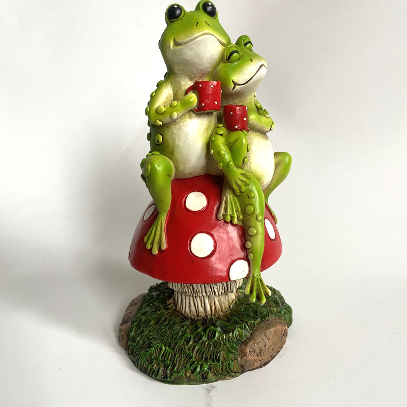 국경 간 개구리 커플 앉아 버섯 정원 동상 장식 장식품 수지 공예 장식품 마이크로 풍경 조각