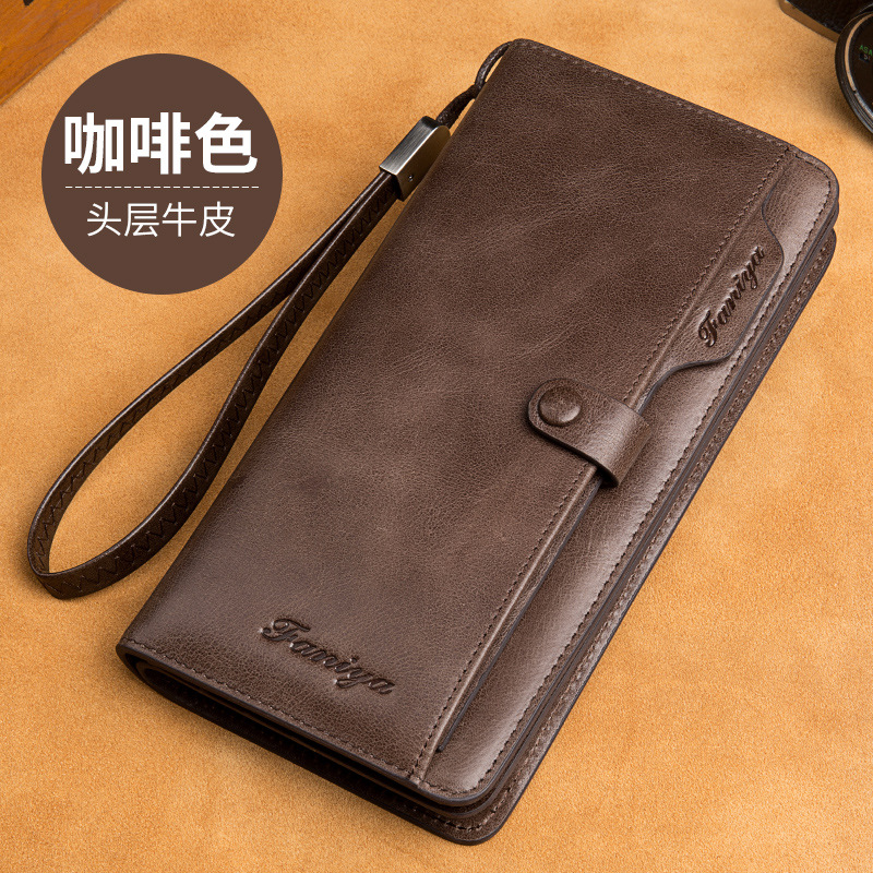 Fania 남성 지갑 긴 지퍼 정품 가죽 클러치 드라이버 라이센스 카드 가방 소가죽 청소년 남성 지갑스토어 가기