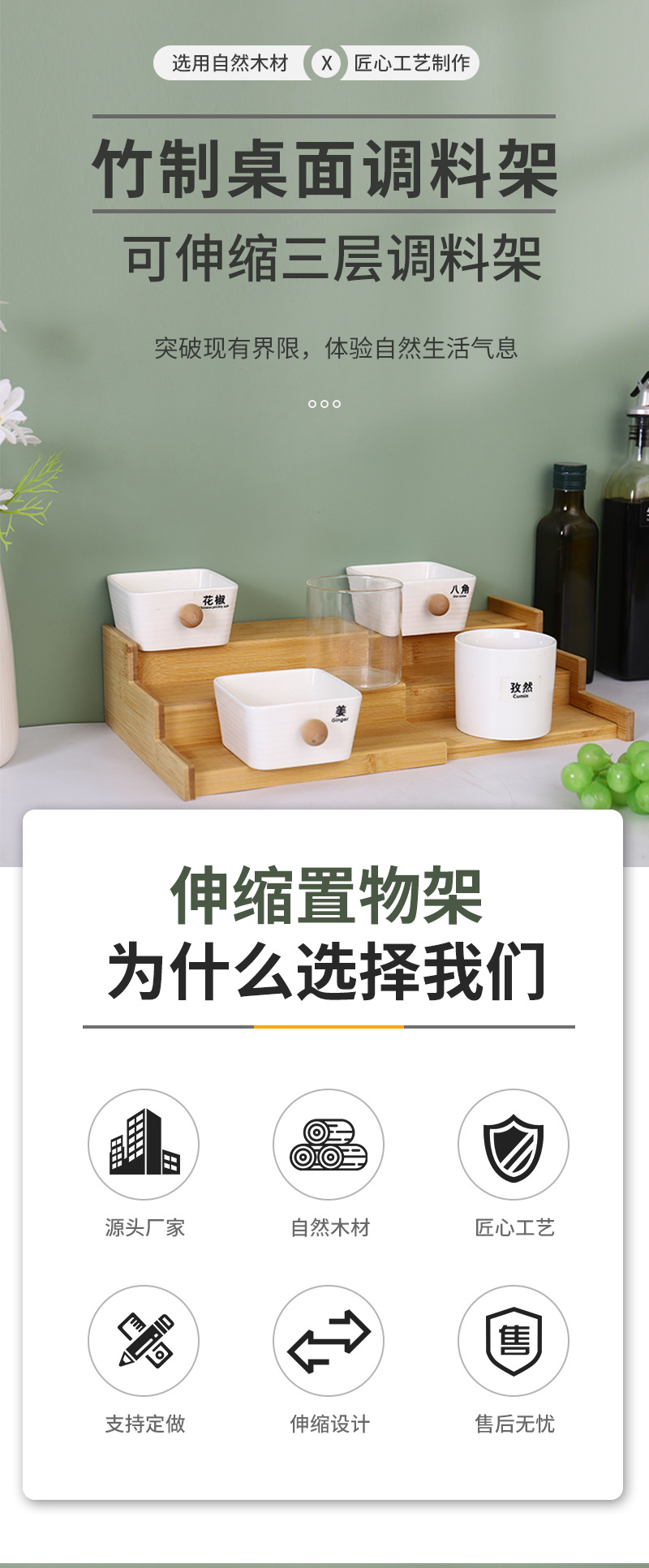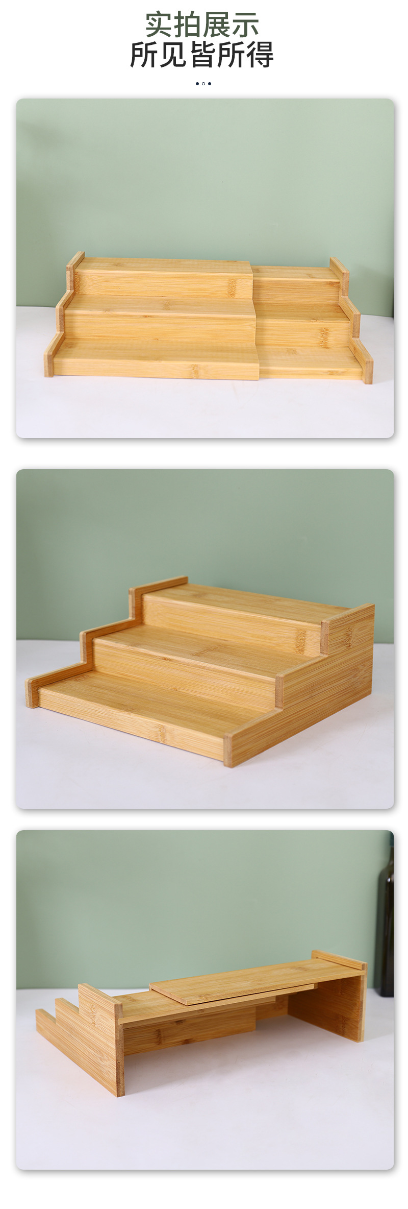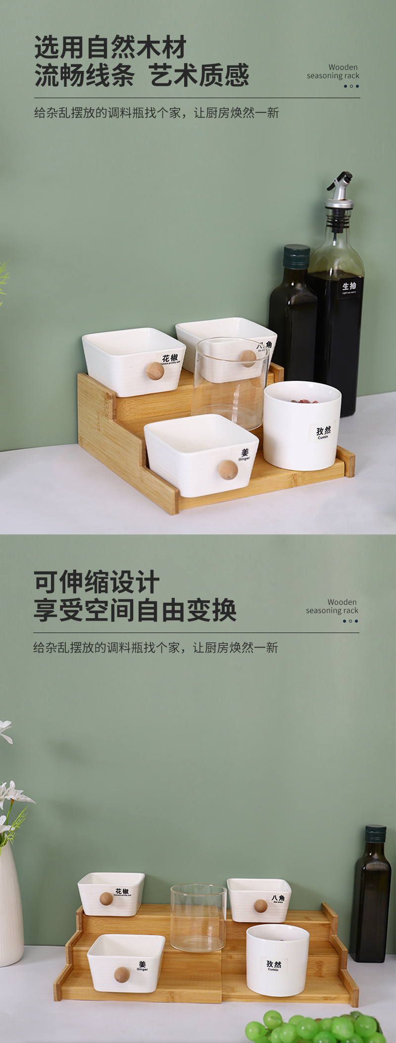 재고 대나무 데스크탑 스토리지 랙 향신료 랙 대나무 신축성 3 층 향신료 랙 스토리지 랙