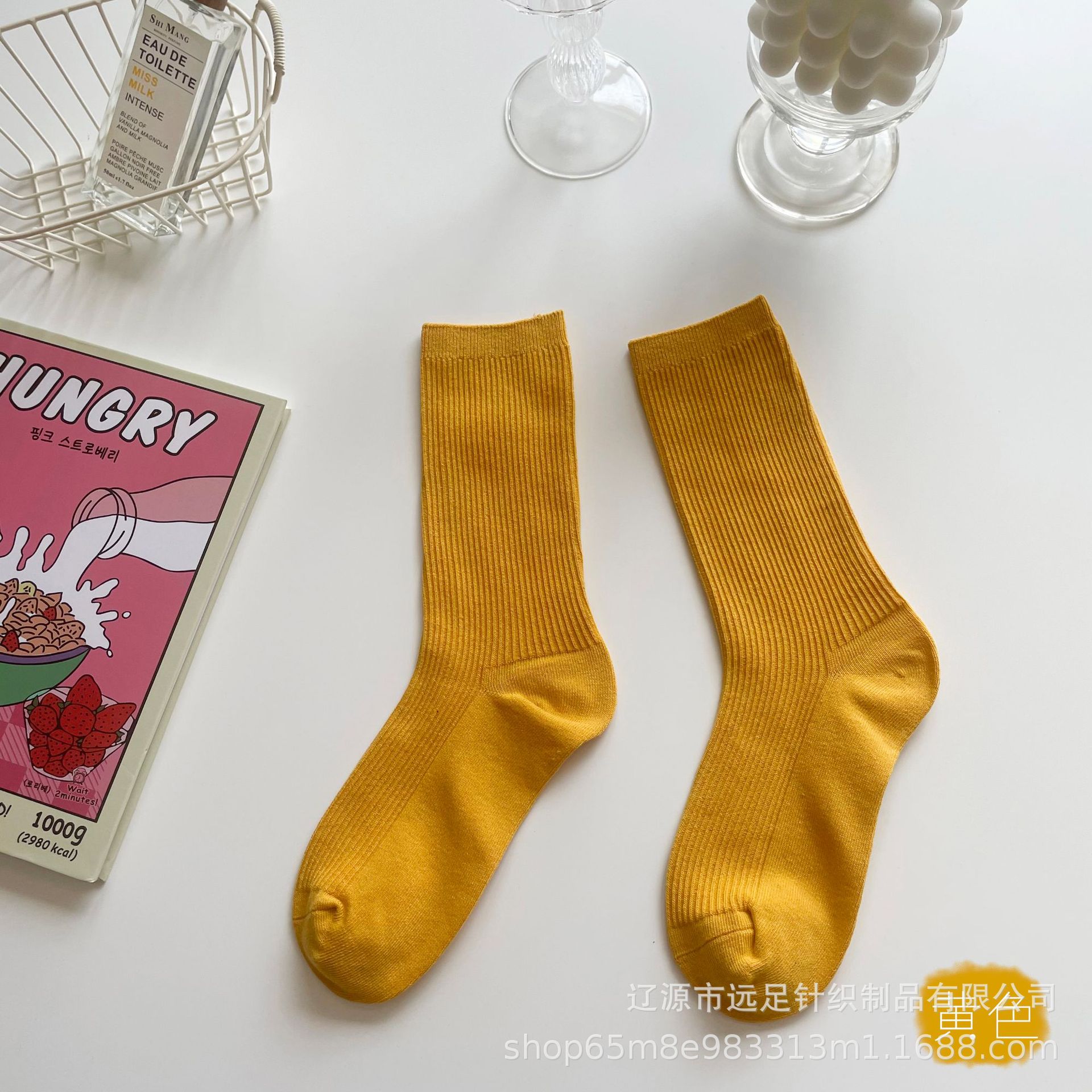 하이킹 새로운 색상 스타킹 어린이 사계절 모든 매치 캔디 컬러 단색 더블 바늘 면 스타킹 어린이 스택스토어 가기