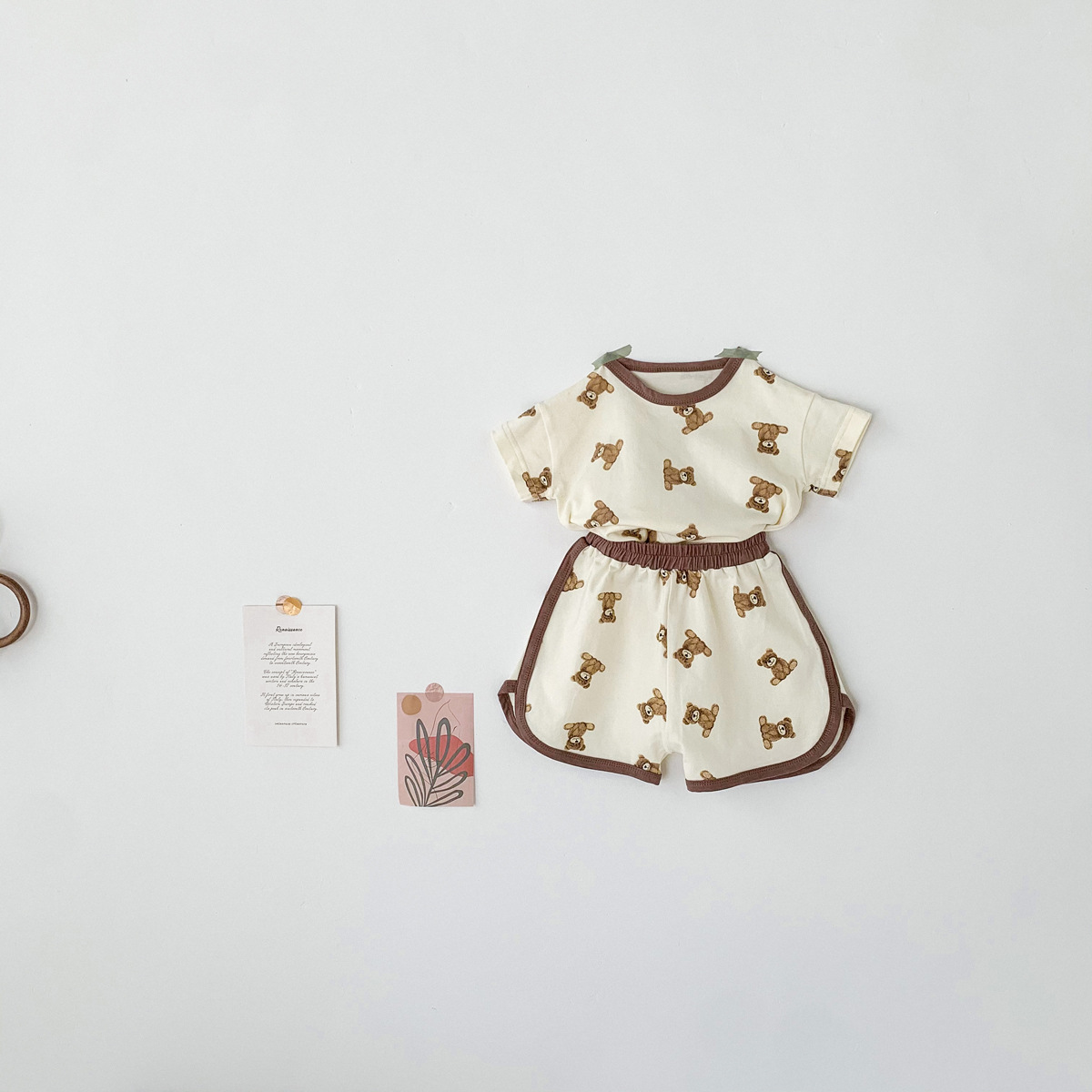 아기 소년과 소녀 여름 곰 반팔 반바지 세트 아기 스타일리스트 투피스 세트 세트 한국식 아동복
