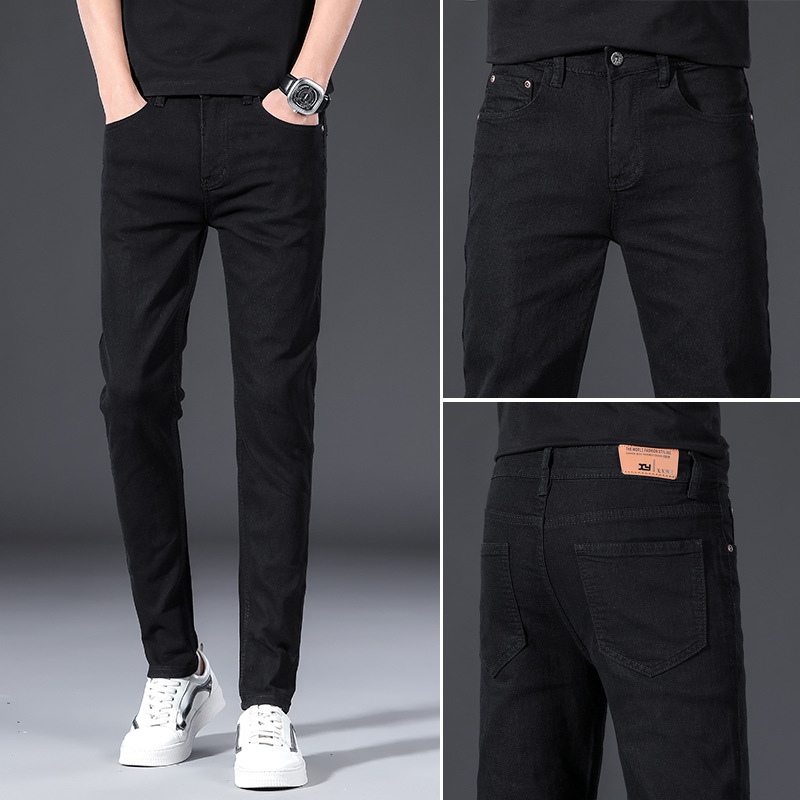 봄과 여름 남성 스트레치 슬림핏 슬리밍 스키니 팬츠 트렌디 브랜드 만능 캐주얼 화이트 스트레이트 데님 롱 팬츠스토어 가기