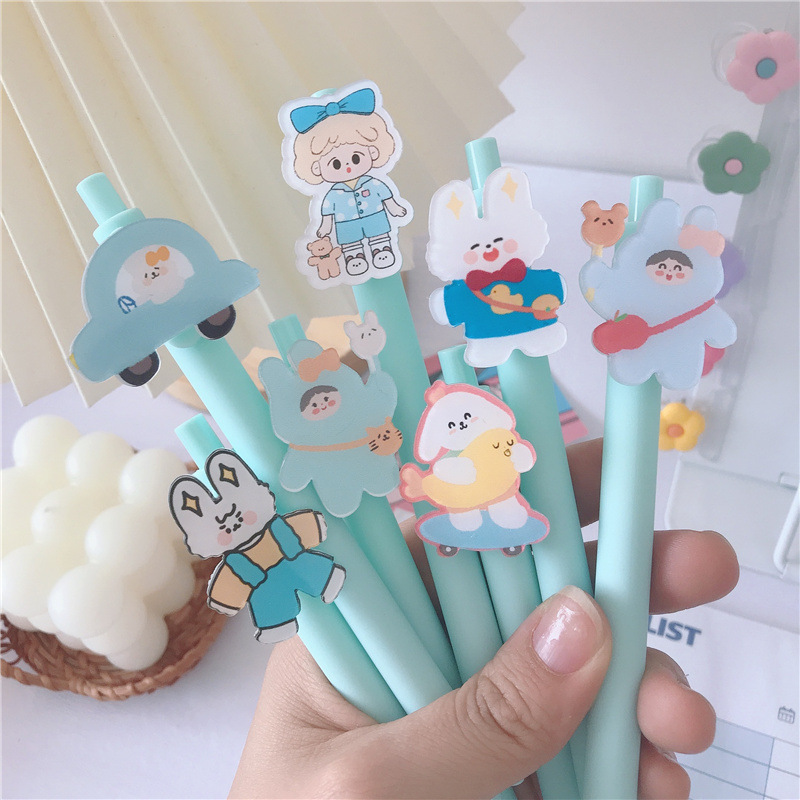 만화 창조적 인 젤 펜 어린 소녀 0.5mm 검은 총알 쓰기 테스트 펜스토어 가기