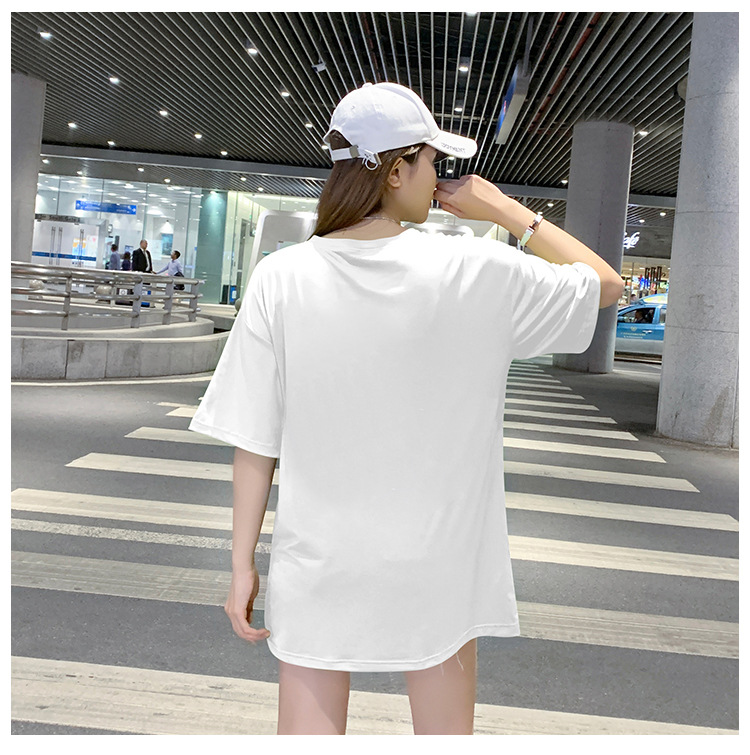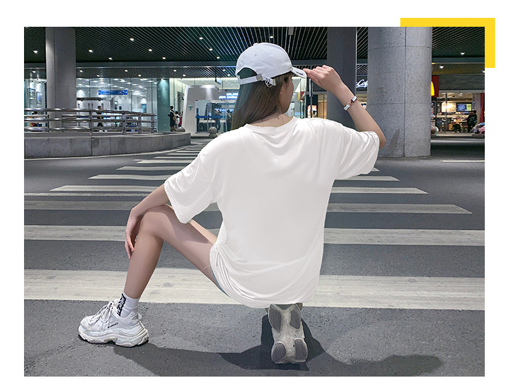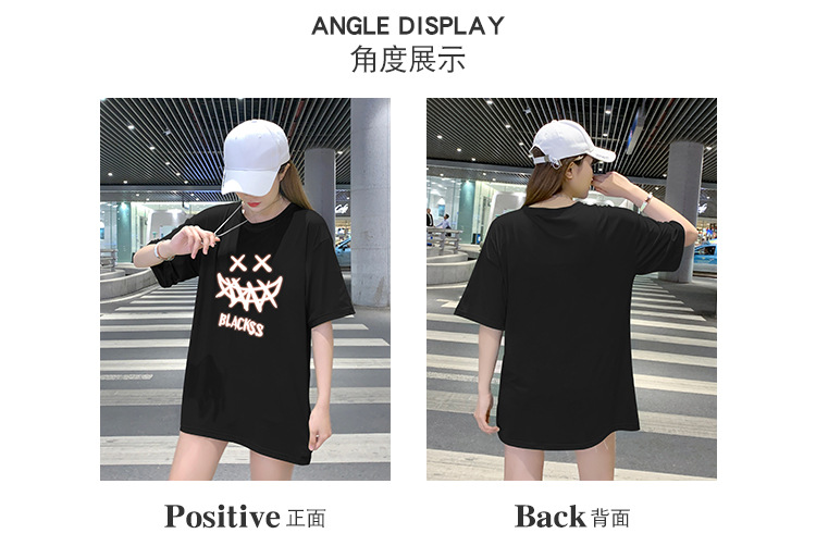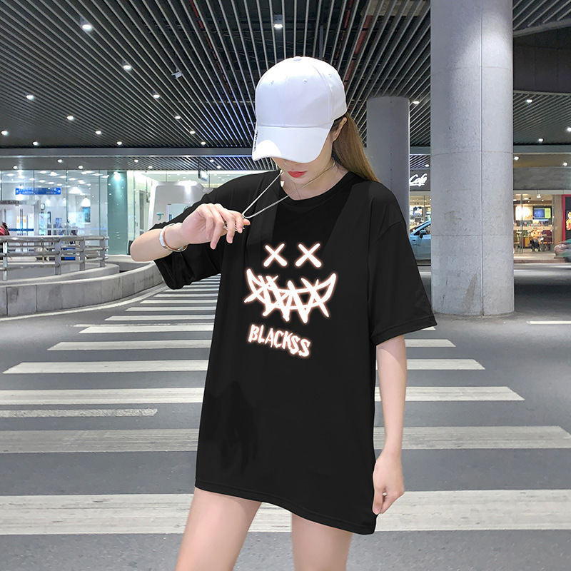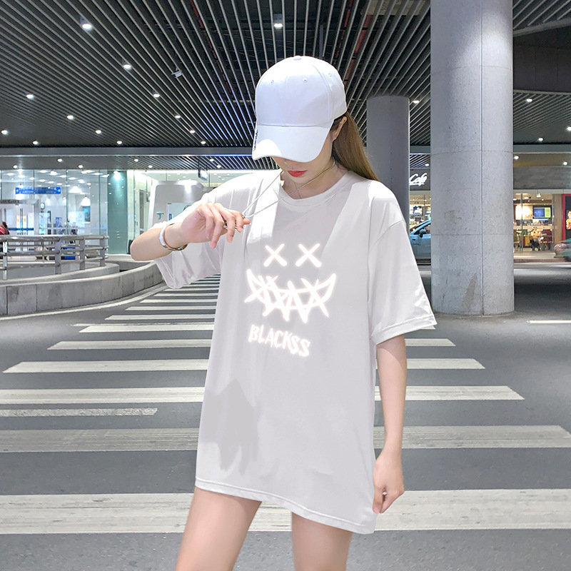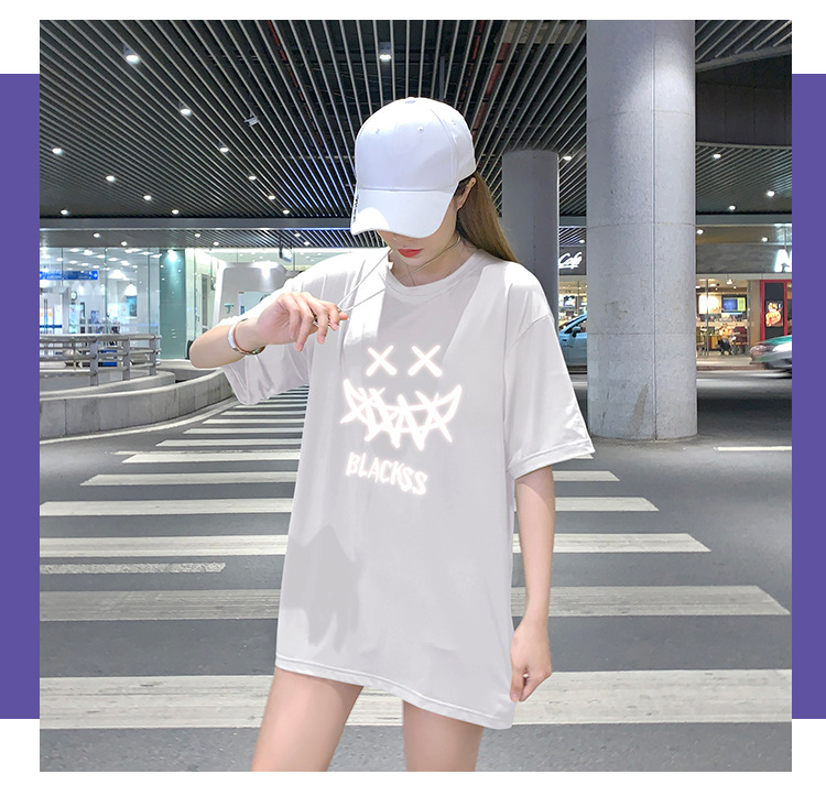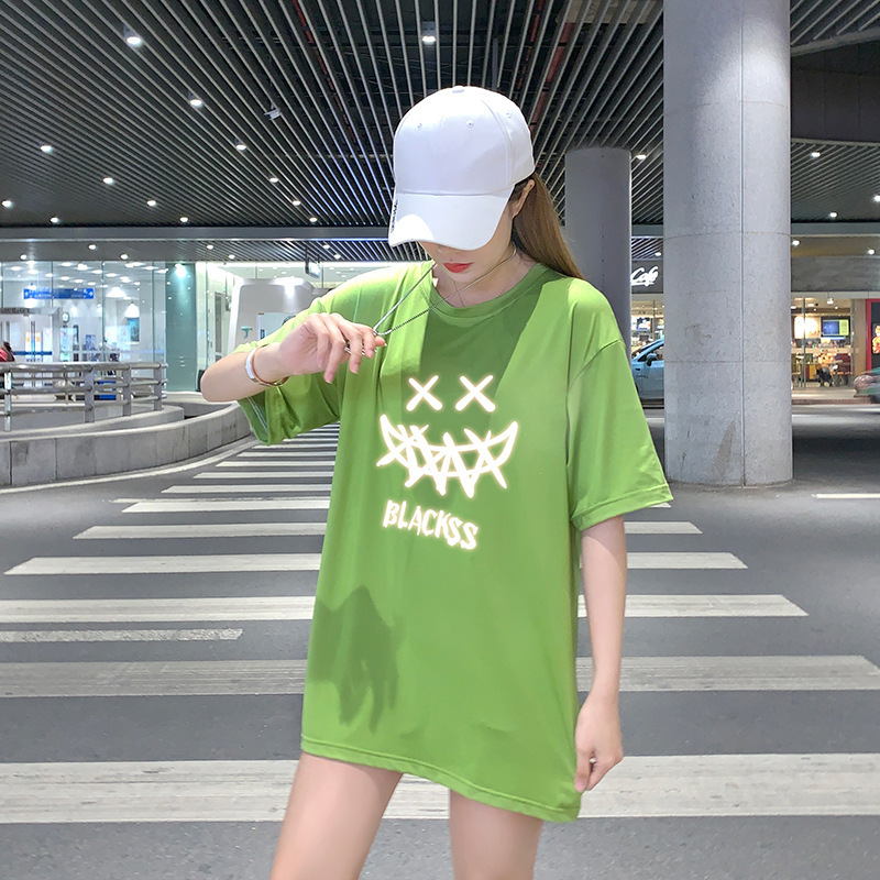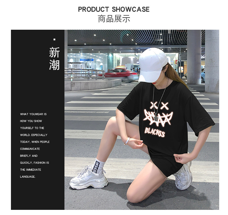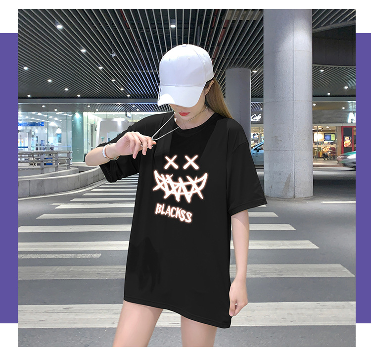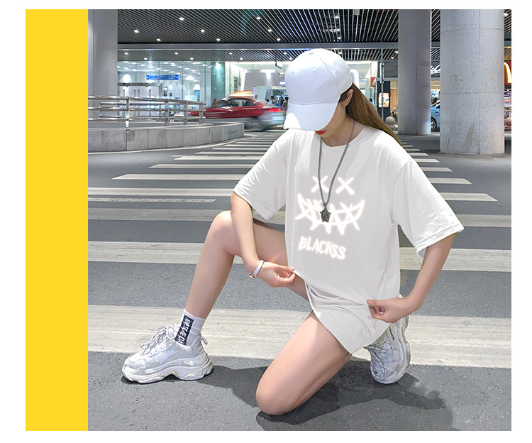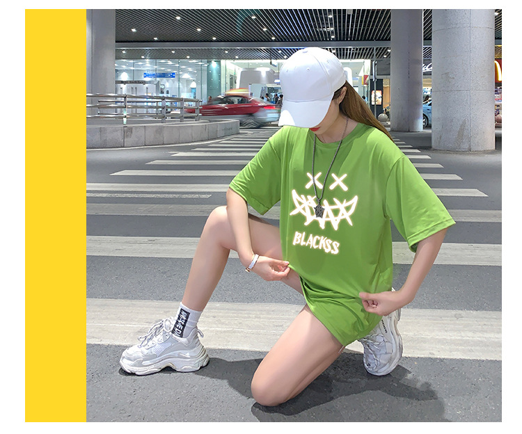 여성용 여름 2021 대형 티셔츠 여성용 반팔 인 트렌디 한 느슨한 중간 길이 이상한 스타일 소녀의 탑 옷 힙합 반 소매스토어 가기