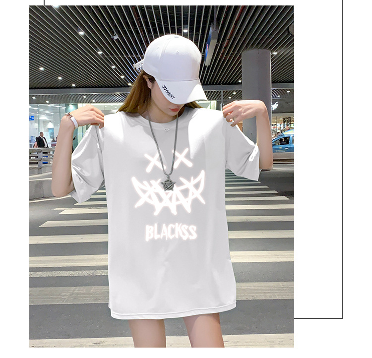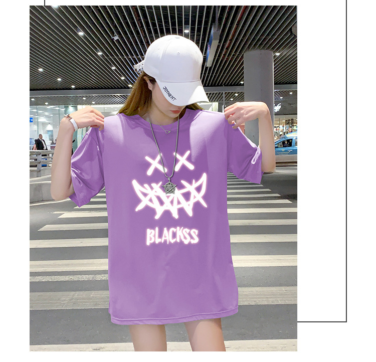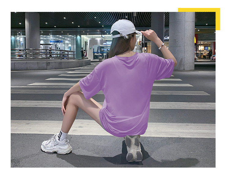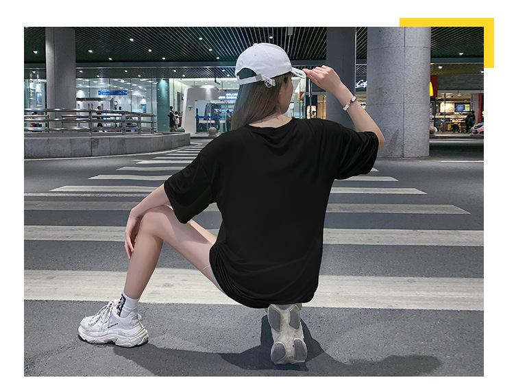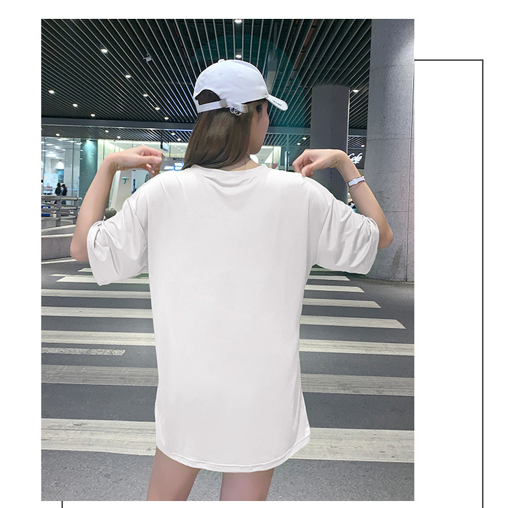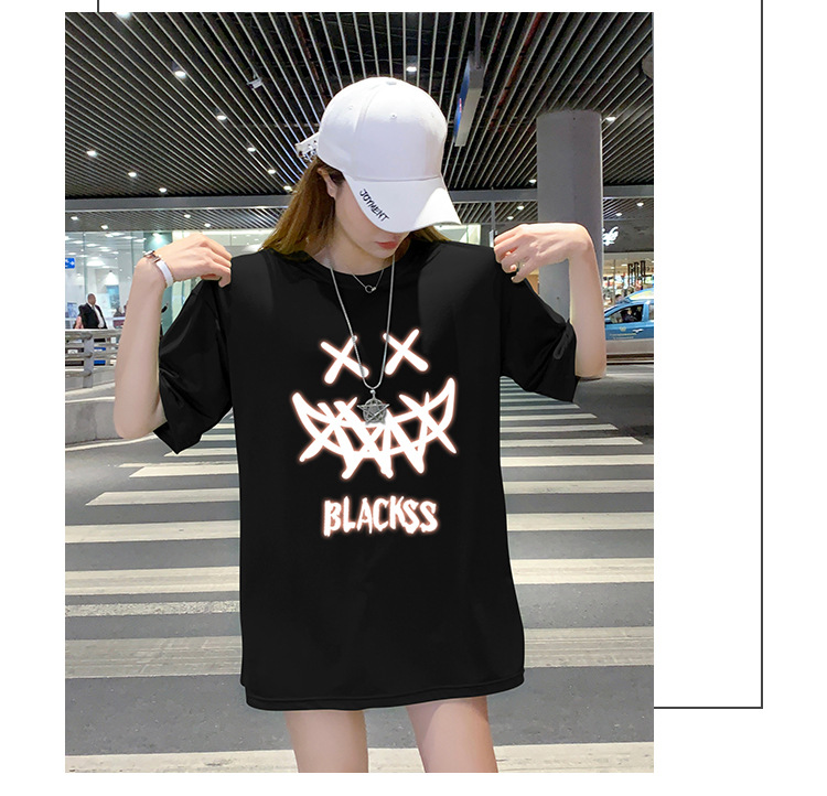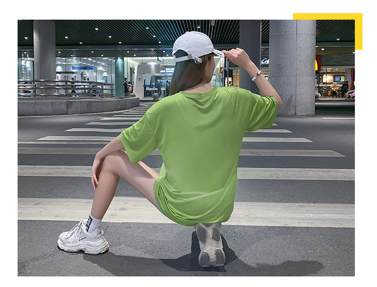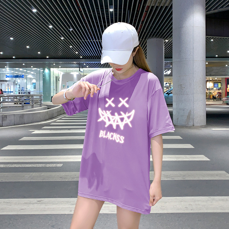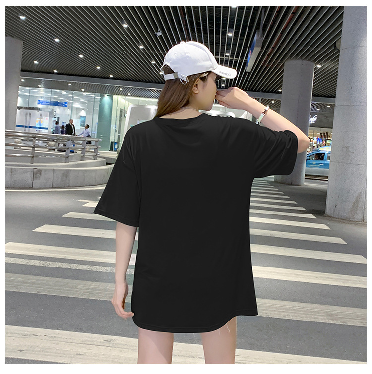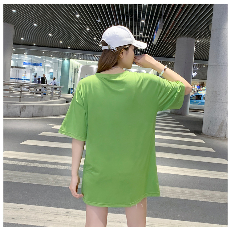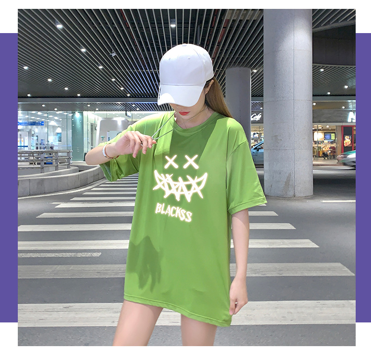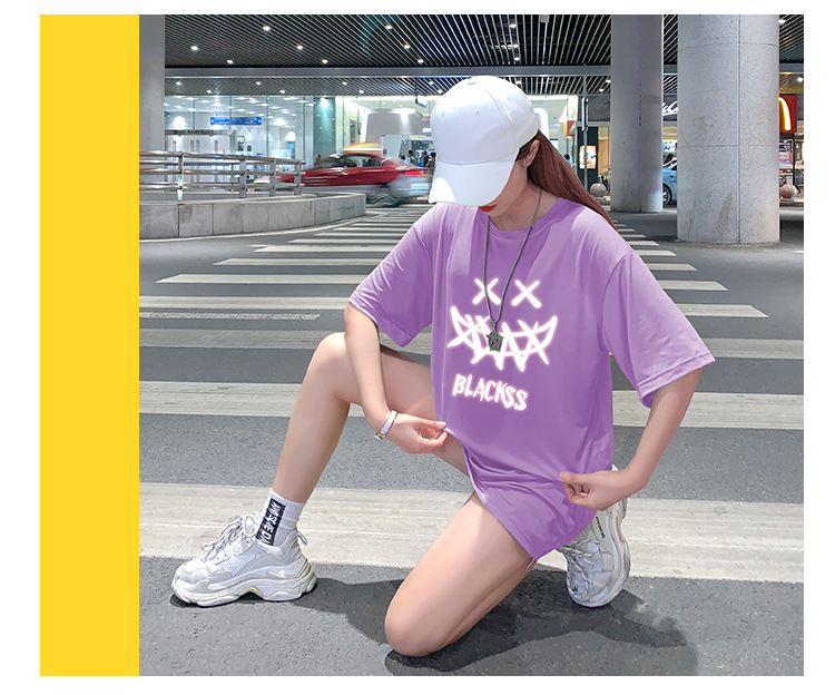 여성용 여름 2021 대형 티셔츠 여성용 반팔 인 트렌디 한 느슨한 중간 길이 이상한 스타일 소녀의 탑 옷 힙합 반 소매스토어 가기