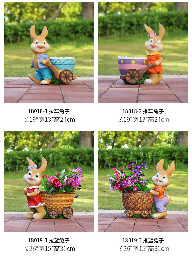 만화 토끼 화분 조각품 야외 정원 경관 정원 안뜰 유치원 유리섬유 창의적인 바닥 장식품스토어 가기