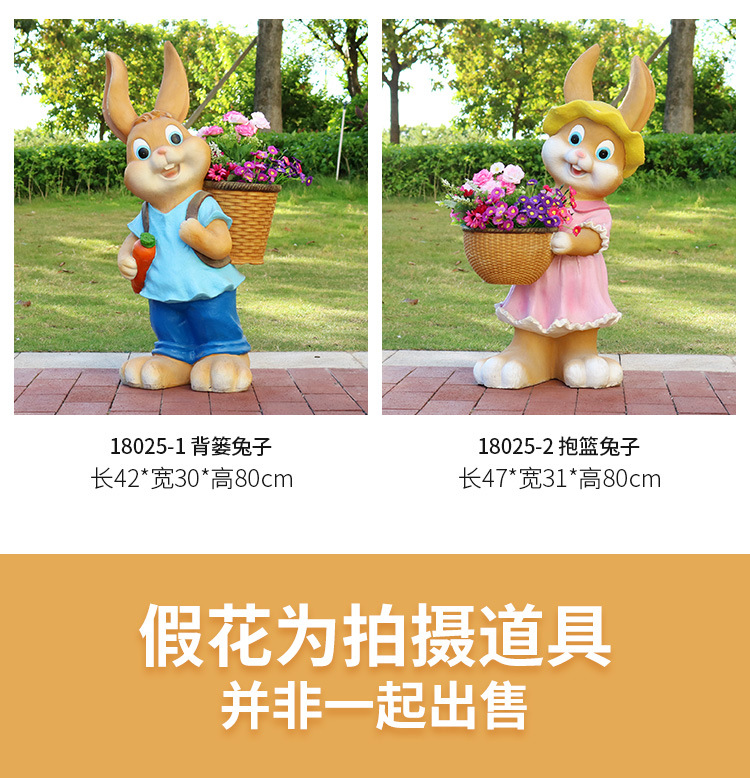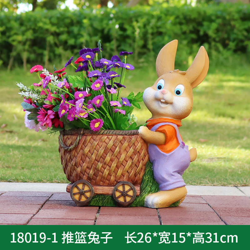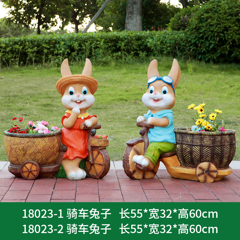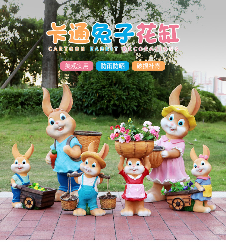 만화 토끼 화분 조각품 야외 정원 경관 정원 안뜰 유치원 유리섬유 창의적인 바닥 장식품