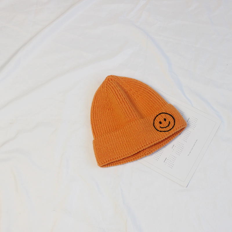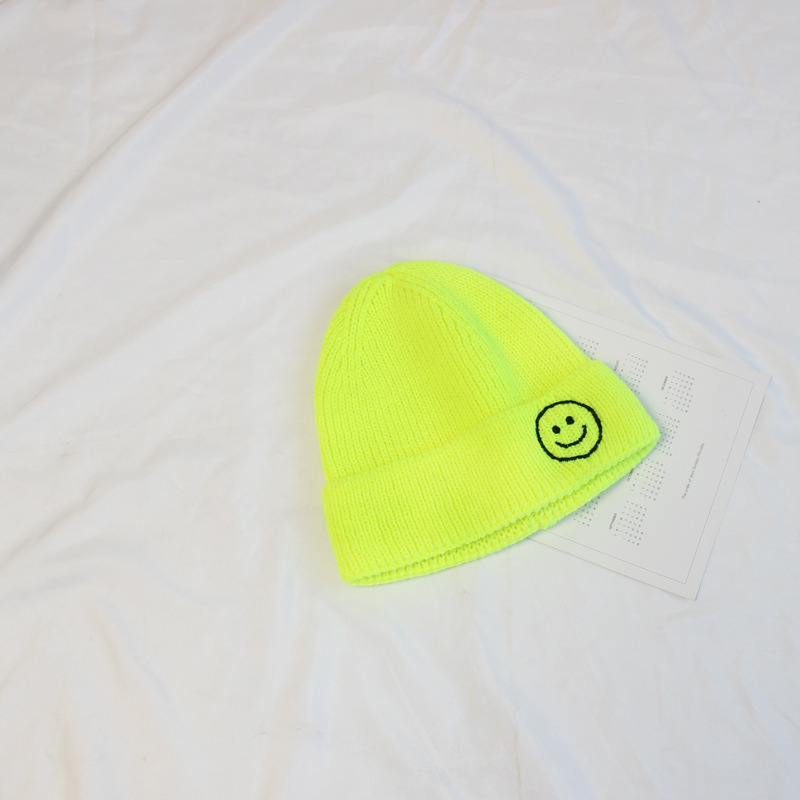 단색 스마일 자수 니트 모자 재고 캐주얼 캔디 컬러 어린이 양모 모자 한국 패션 따뜻한 모자스토어 가기