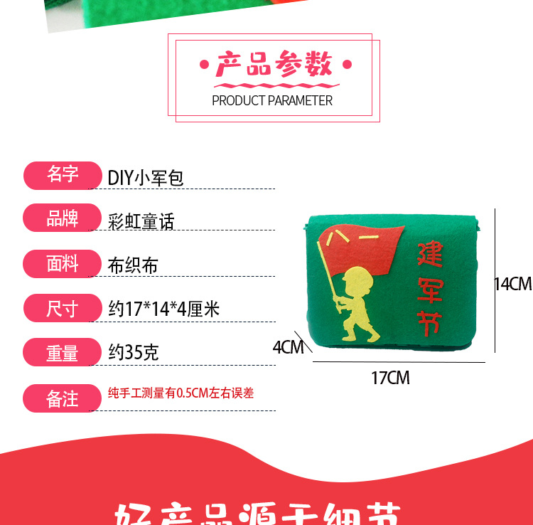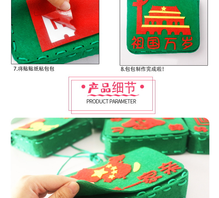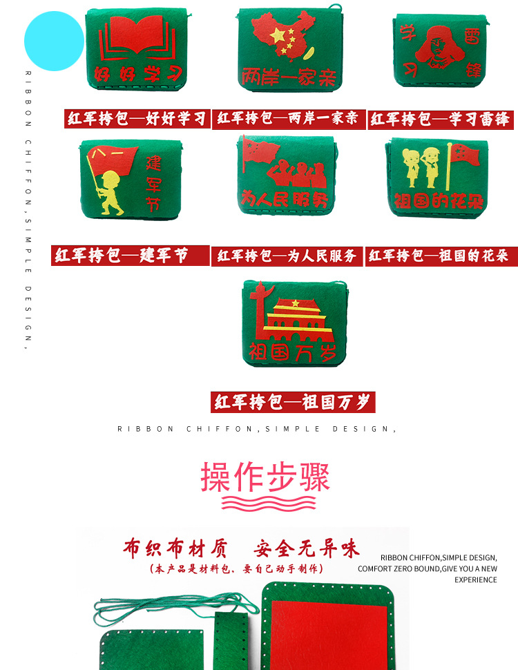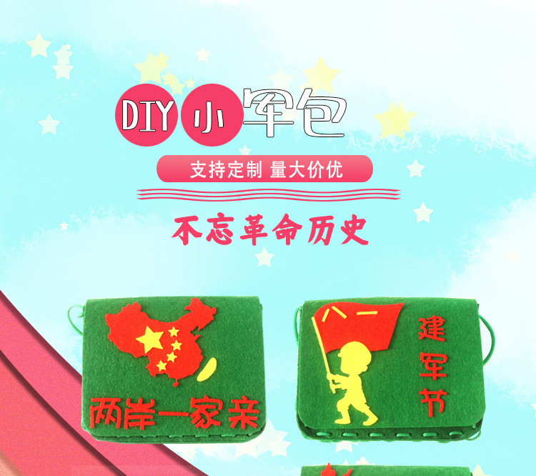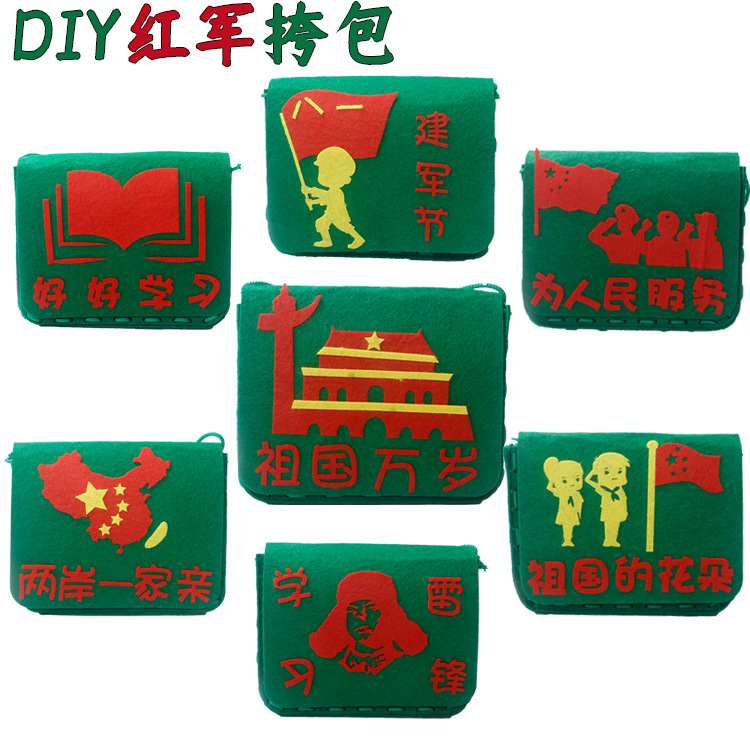 Jianjun 국경일 DIY 부직포 가방 유치원 창조적 인 수제 붉은 군대 가방 어린이 DIY 수제 가방