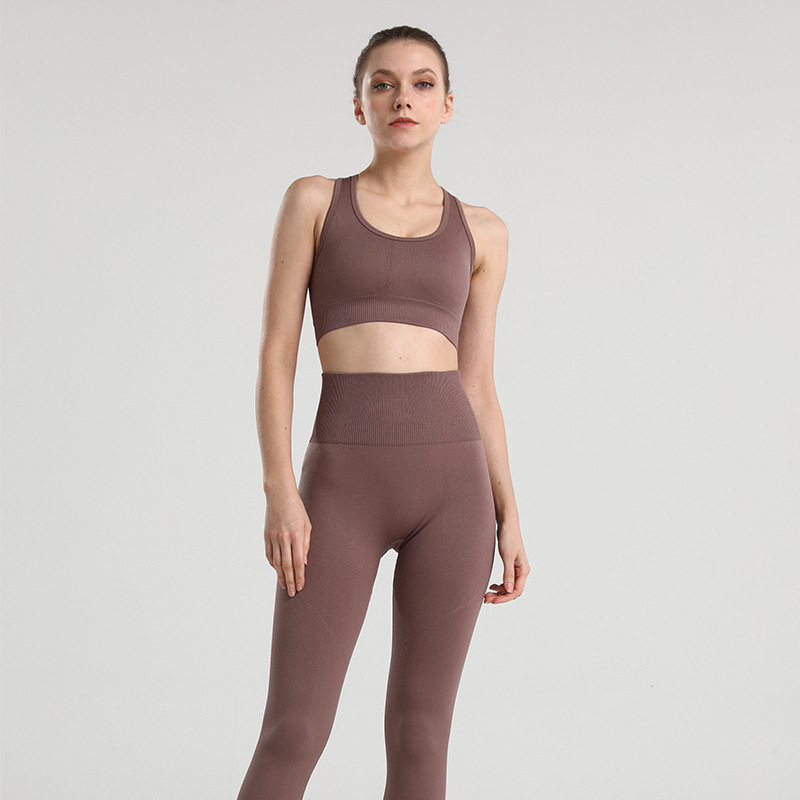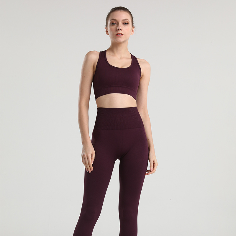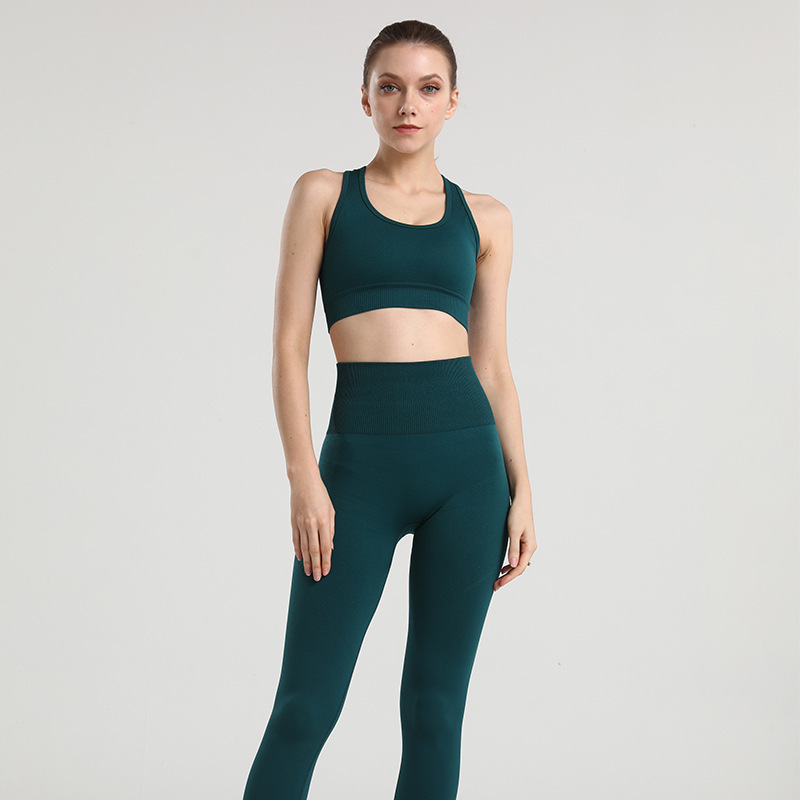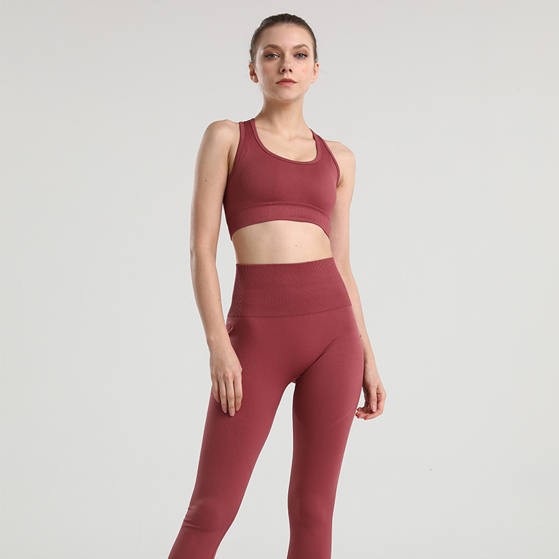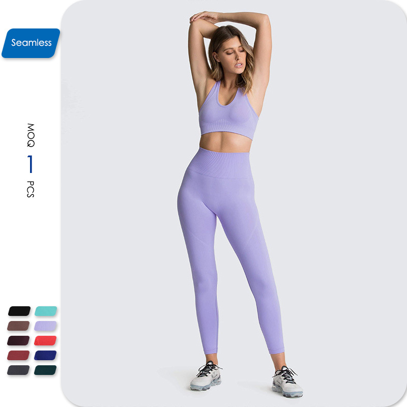 아마존 유럽과 미국 피트니스 요가 의류 여성의 통기성 스포츠 꽉 끼는 하이 엔드 원활한 속건 패션 세트 실행스토어 가기