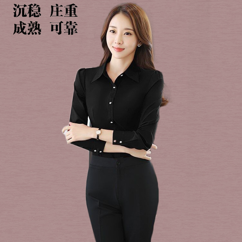 레드 블랙 셔츠 여성용 긴팔 단색 한국식 비즈니스 원피스 원피스 슬림핏 슬리밍 작업복 탑 베이스 셔츠