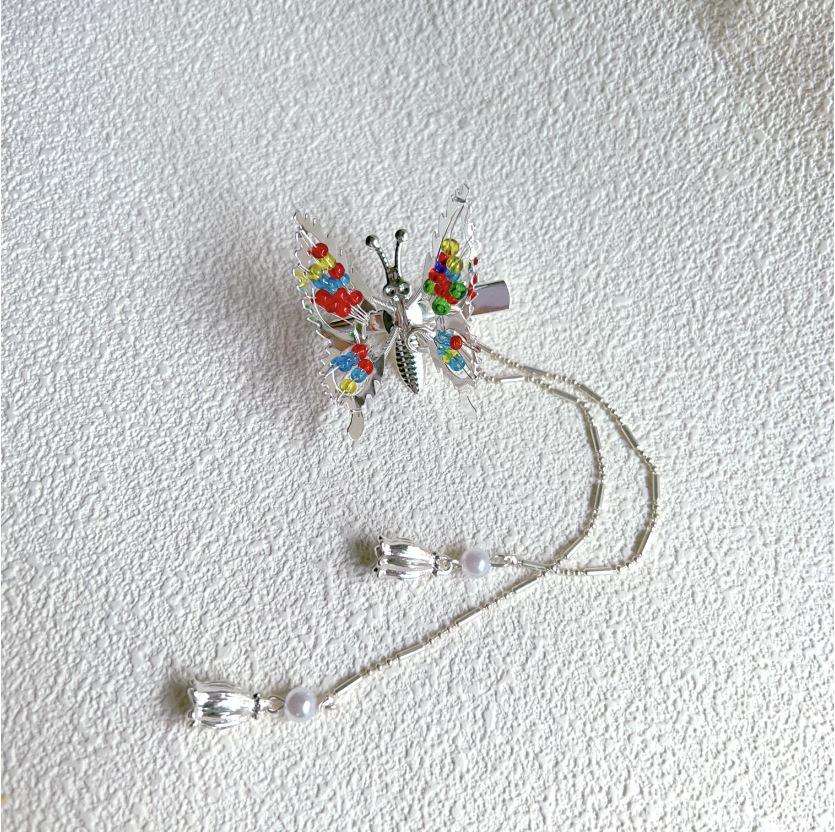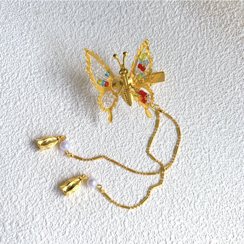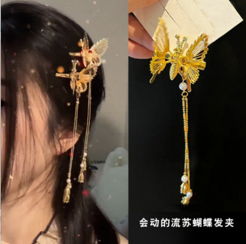 한국 골동품 움직일 수있는 나비 술 머리핀 여성 봄 나방 머리 액세서리 헤어 클립 측면 머리핀 머리 장식